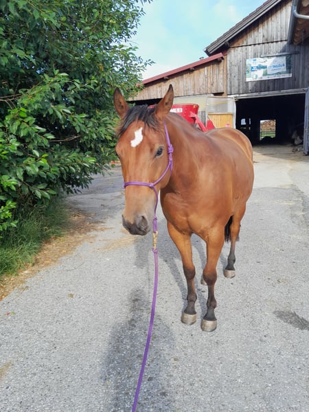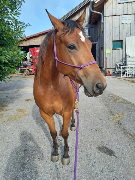 Vendo il nostro castrone Quarter di 4 anni. Shoko è un cavallo molto motivato al lavoro e attualmente sottoutilizzato. È tranquillo in fase di carico, ha esperienza di lavoro in campo aperto come cavallo da maneggio, conosce il lavoro a terra e il longe. Attualmente non è montato, deve essere nuovamente messo in sella. Vive attualmente in paddock aperto con una mandria mista, con accesso al pascolo, ma conosce anche box e paddock. A causa di una condizione riscontrata sulla zampa posteriore destra, il prezzo è più favorevole. È privo di zoppie!