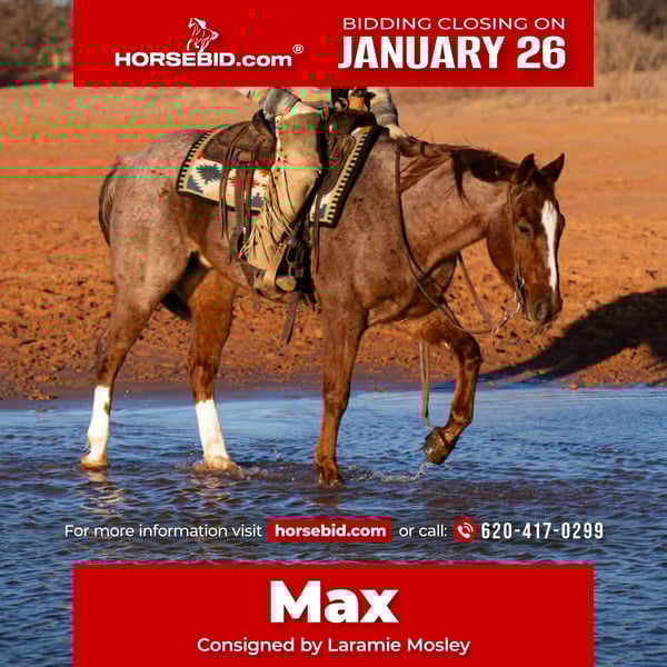 𝐉𝐀𝐍𝐔𝐀𝐑𝐘 ⭐️𝑨𝒍𝒍 𝑺𝒕𝒂𝒓 𝑳𝒊𝒏𝒆𝒖𝒑⭐️ Happening now thru MONDAY | JANUARY 26th - Available EXCLUSIVELY on HorseBid's website! For more details and to register visit: www.Horsebid.com CONSIGNOR CONTACT: Laramie Mosley 620-417-0299 LOCATION: Canyon, TX BREED: Quarter REGISTERED: Yes REGISTERED NAME: Starlight Tradition COLOR: Red Roan HEIGHT: 15.1 AGE: 5 GENDER: Gelding