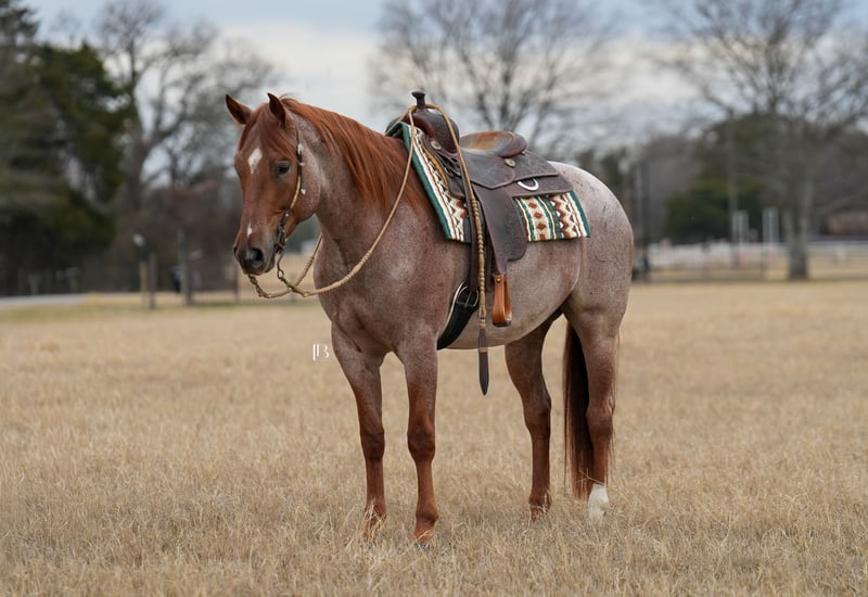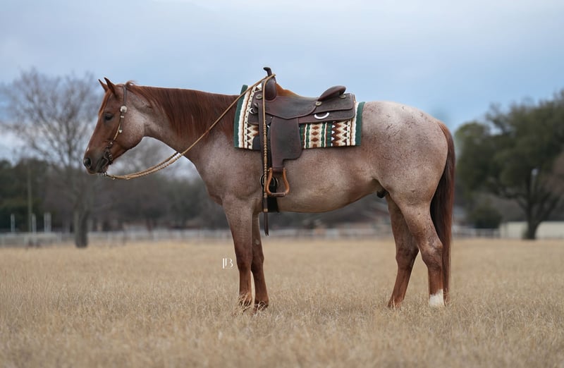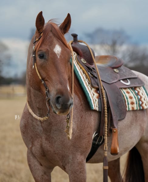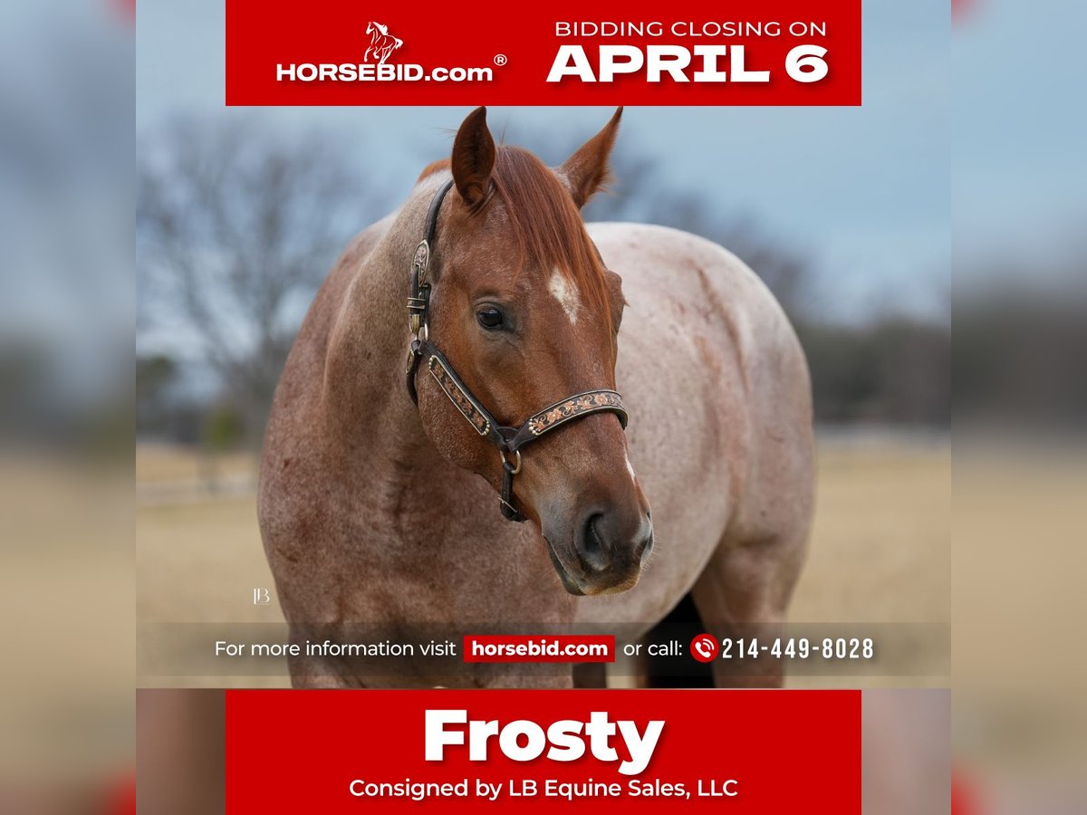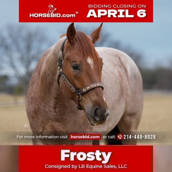 🌟𝑨𝒑𝒓𝒊𝒍 𝐀𝐋𝐋 𝐒𝐓𝐀𝐑 𝐋𝐈𝐍𝐄𝐔𝐏🌟 Happening now thru MONDAY | APRIL 6th - Available EXCLUSIVELY on HorseBid's website! For more details and to register visit: www.Horsebid.com CONSIGNOR CONTACT: LB Equine Sales, LLC 214-449-8028 LOCATION: Terrell, TX BREED: AQHA REGISTERED: Yes REGISTERED NAME: MPD WYO Frost COLOR: Red Roan HEIGHT: 15.2 AGE: 5 GENDER: Gelding To know Frosty is to love him. With his striking good looks and kind, expressive, and sensible nature, he has a way of winning over everyone he meets. Frosty truly defines versatility—we have yet to find anything he won’t do. Gentle, honest, safe, and seasoned both on and off property, he is the kind of gelding you can trust. His video is a must-watch to fully appreciate just how well-rounded and enjoyable he is. Not only is he beautiful to look at, he is exceptionally comfortable to ride, sound in both body and mind, and suitable for a wide range of riders. From ranch work—moving cattle, pasture roping, and picking up at rodeos—to leisurely bareback rides down the road, Frosty has done it all. He rides quietly in both western and English tack and has even been started over fences. He is a confident and enjoyable trail partner, happy to go out alone or in a group, and navigates all types of terrain with ease—water, bridges, fallen logs, and steep ground are no problem. He is kind and tolerant, not reactive or aggressive, and remains steady even in busy environments. He will pony young horses, stands quietly tied for hours, and is the type to load up willingly and go straight to work wherever you take him. He takes new things in stride with a good head on him, and time off does not affect him—he stays gentle, consistent, and reliable every ride. Frosty combines a solid ranch foundation with eye-catching, “hack-winning” movement. He floats across the ground with a naturally smooth, comfortable way of going. We have developed him with an emphasis on western dressage, ranch versatility, and hunter under saddle. He moves easily into a frame, covers ground effortlessly, and prefers a more relaxed, push-style ride while remaining responsive when asked. His trainability, movement, and willing mindset make him an exceptional all-around partner. Since transitioning from a ranch program, Frosty has adapted seamlessly to a more pampered lifestyle—enjoying all the attention, treats, and care that comes with it. He has excellent stall manners, no vices, and a calm, easy going demeanor. He receives daily turnout and has even been trusted as a babysitter for my weanlings. Over the past eight months, we’ve come to know him inside and out, and we are confident he will transition smoothly into any program or home. He is consistently kind, willing, and dependable, with a “yes ma’am” attitude that never wavers. Frosty sells with a complete set of radiographs, a current veterinary statement of soundness, and full veterinary records including vaccinations, dental, and Coggins. He is 100% sound with no known health issues, barefoot with excellent feet, and clean-legged. His AQHA papers are in hand and ready to transfer, and a bill of sale will be signed by buyer/seller at the conclusion of the sale. As a thank you to his new owners, Frosty will go home with a custom engraved leather halter from Quinlin Leather. Frosty is located in Terrell, Texas. We welcome phone inquiries and invite prospective buyers to come try him in person. We are also happy to assist with arranging shipping nationwide or internationally.