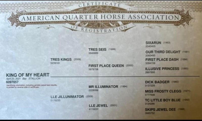ONLINE AUCTION Place your bids at www.PlatinumEquineAuction.com Starting Bid $3500 Auction ends December 8th, 2024 Need a new saddle? Check out White Rock Saddles on our website or Facebook! Thor is 16HH 3 year old registered gelding, out of tres king and LLE Jilluminator. He has a wonderful foundation and he has an excellent mind, not spooky, no buck, no rear extremely trainable, nothing fazes him, ties, stands for the ferrier, loads, trail rides, gathered cows, huge stop, very athletic, wants to hunt a cow, would trust a handy youth rider on him. He’s sound with Clean X-rays, just got his teeth done three months ago, and up to date on his vaccines. Thor is a barrel or rope prospect but can go in any direction. Located in Napa, CA. Contact Nikki Young 707-799-7737 for more info or to set up a time to come see him in person. ONLINE AUCTION Place your bids at www.PlatinumEquineAuction.com Starting Bid $3500 Auction ends December 8th, 2024 Need a new saddle? Check out White Rock Saddles on our website or Facebook!