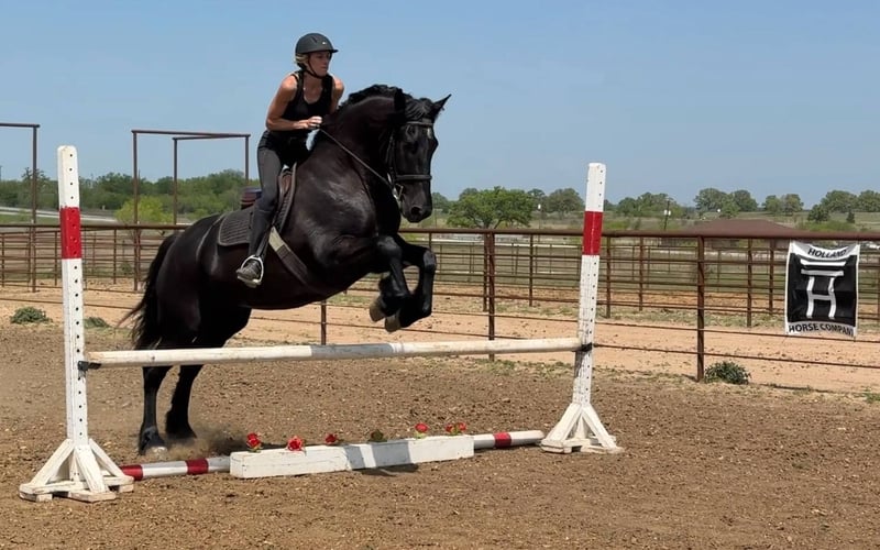 ONLINE AUCTION Place your bids at www.PlatinumEquineAuction.com Starting Bid $3500 Auction ends May 4th, 2025 Need a new saddle? Check out White Rock Saddles on our website or Facebook! Axle is an absolutely stunning 4 year old draft cross gelding standing 16.2 hands. He is the sweetest boy with all the personality and willingness to learn. We have exposed Axle to a little bit of everything and see so much potential for him to go any direction or be an all around guy! He is broke to ride Western, English, and is started over fences. He is also broke to drive. He is a complete gentleman and kind and gentle. He is very smart and learns easily. Axle is great out on the trails in all terrains and will go anywhere you ask of him. He has beautiful movement in all 3 gaits and can collect up or extend out with ease. He has a great stop and rides in a simple snaffle bit. Axle shows a ton of promise over fences and is brave and honest. He has great ground manners, is good with his feet, stands tied, clips, hauls well etc. He is a big playful boy with a ton of personality! He is easy to catch and with greet you at the gate. He absolutely loves people and going to do something. We think anybody will fall in love with him as soon as they meet him! He is sound, straight and clean legged. UTD. FMI call/text Holland Horse Co. Chanel 559-978-6320. Located in Jacksboro, TX. ONLINE AUCTION Place your bids at www.PlatinumEquineAuction.com Starting Bid $3500 Auction ends May 4th, 2025 Need a new saddle? Check out White Rock Saddles on our website or Facebook!