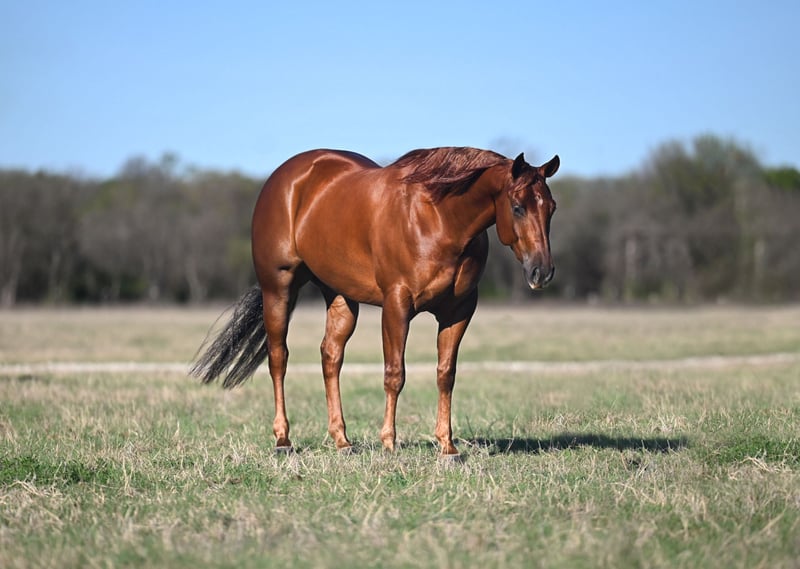 CHILI, 5-letni kasztanowy wałach AQHA o wysokości 15,1 hh