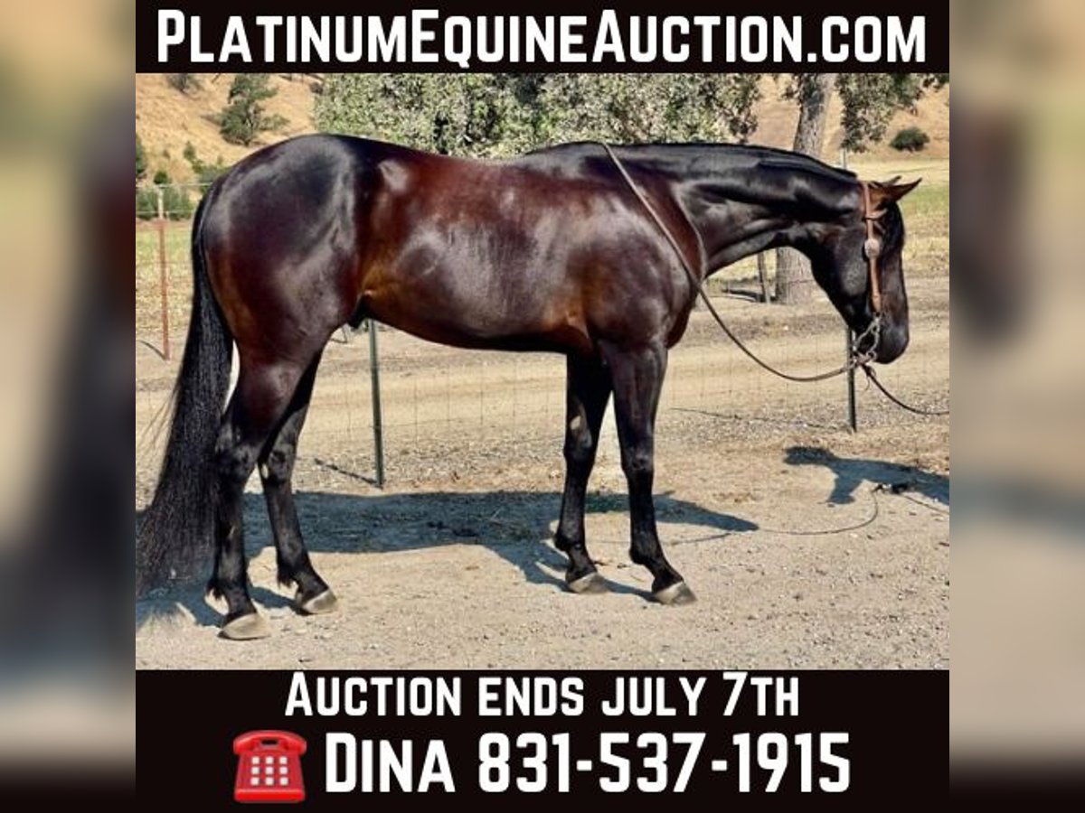 ONLINE AUCTION Place your bids at www.PlatinumEquineAuction.com Starting Bid $3500 Auction ends July 7th, 2024 Need a new saddle? Check out White Rock Saddles on our website or Facebook! Rc Poco Royal King Your dream horse awaits! Zoro AQHA 2021 is a show stopper black gelding currently standing 14.3. He is sired by the great Kelly’s Blue King AQHA – NFQHA blue roan 90 percent foundation bred stallion who goes back to the great Poco Bueno known for their great minds and athletic ability and are extremely versatile and he has clearly passed it down to Zoro. I have to say at my age there are not many young horses I trust and I trust this horse whole heartedly. He is gentle and has no spook to him at all he’s amazingly calm and easy going. He has been started correct with natural horsemanship method. He rides with a nice low headset and uses his body correctly. He lopes beautiful circles and is crossing over nicely in his turn around. He responds to leg cues and will arch and counter arch with the slightest touch. This boy is extremely gentle for his age and takes everything asked of him in stride. He has been used to gather cattle all winter and even branded a few calves and has done everything he’s been asked. He is sure footed and easy to handle will go out alone or with others and doesn’t mind riding off and leaving the herd. He is cowey and confident crosses water, logs and has seen tons of wildlife. We have desensitized him to the ball, tarp and flag and he will not bat an eye at any of it. Zoro has been around some trail obstacles and does great with new things. He has been to town and isn’t bothered by cars or loud noises. He is very willing and adaptable with the most amazing mind and temperament. He ties,clips and bathes is great for the farrier and vet. This boy has an amazing future and could go in any direction great trail partner, extreme ranch obstacle, ranch, rope, or performance horse the possibilities are absolute endless. He has handled time off great and acts like he never missed a day off he has no bad habits and is super easy to be around, handle and ride he is extremely gentle acts like a horse well beyond his years. This boy Will absolutely make everyone notice him with his beauty and style. He will be the Apple of you’re eye and barn favorite. If you would like to come take Zoro for a spin or have any question contact Longhorn Ranch call Dina 831-537-1915 Located in Paicines, CA. ONLINE AUCTION Place your bids at www.PlatinumEquineAuction.com Starting Bid $3500 Auction ends July 7th, 2024 Need a new saddle? Check out White Rock Saddles on our website or Facebook!
