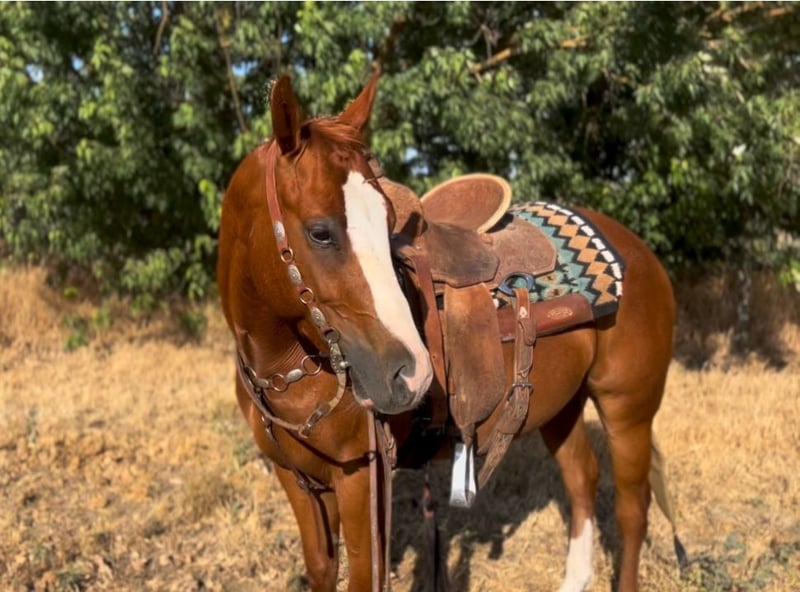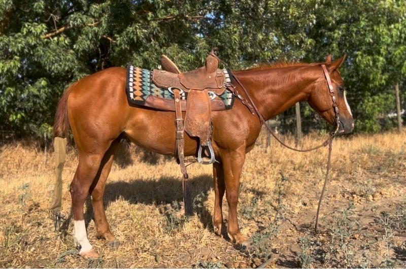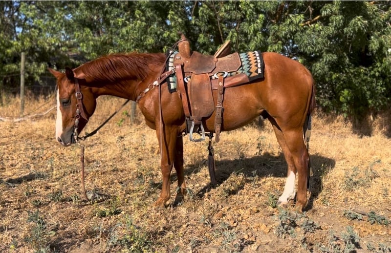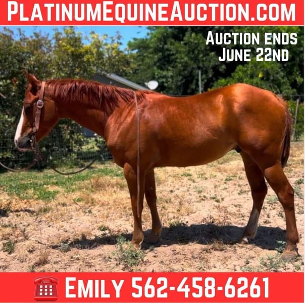ONLINE AUCTION Place your bids at www.PlatinumEquineAuction.com Starting Bid $3500 Auction ends June 22nd, 2025 Need a new saddle? Check out White Rock Saddles on our website or Facebook! Blues clues Aka “clues got a gun “ 5 yo apha registered gelding Out of Clues classic and sired by Runnin and Gunnin. Blues stands at 14 hands. He has a very goofy and in your pocket personality! Whereever you are blues clues is there too ! This handsome handy guy is the ideal Cowgirl or Cowboy mount. He has an excellent handle on him for his age ! From roping, sorting, and checking cattle, he knows his job and is all business. He loves going out and working cows it is one of his favorite things to do! Send him across all types of terrain, rough mountains, miles of ranch country, he takes it all in stride with his ears forward and willing to do whatever is asked of him. He is very sure footed out on trails ! He has a huge stop, quick spins and rocking chair lope. He would make a jam up break away horse. Truly ready to go any direction! We have taken blues out on trails, down busy roads through town, and obstacle courses, nothing really fazes him he takes it all in stride ! This guy is super reliable and has never refused what we have asked of him. He Has a sweet and relaxed personality. no rear, or buck. Will make someone an awesome horse he is very easy to get along with. Call Emily Cervantes 562-458-6261 for more info or to set up an appointment to meet this gem. Located in Atwater, CA. ONLINE AUCTION Place your bids at www.PlatinumEquineAuction.com Starting Bid $3500 Auction ends June 22nd, 2025 Need a new saddle? Check out White Rock Saddles on our website or Facebook!