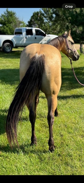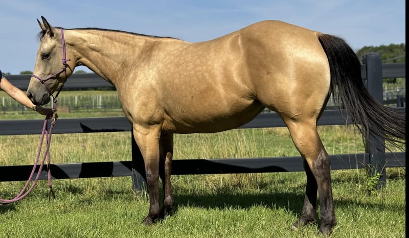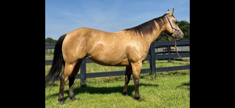 ONLINE AUCTION Place your bids at www.PlatinumEquineAuction.com Starting Bid $3500 Auction ends August 4th, 2024 Need a new saddle? Check out White Rock Saddles on our website or Facebook! Scotch Gun Dunnit “Scotch” is 2020 Model, Registered AQHA, Buckskin Mare, standing 14H. Her pedigree is an all-star line-up of horses, going back to Colonels Smoking Gun, Gallo Del Cielo(AKA Rooster), High Brow Cat, Catster and Pale Face Dunnit! She is a naturally athletic western performance horse and has been shown at Foundation Quarter Shows in ranch pleasure, ranch riding, ranch trail, and reining. Scotch is a talented stopper and has a great turnaround. She also loves hitting the trail and maneuvering through the terrain. She has the temperament of a great all around horse. She’s playful and eager yet easy going. Located in Brooklyn, WI. Contact Steve Andrews 571-331-0741 for more info. ONLINE AUCTION Place your bids at www.PlatinumEquineAuction.com Starting Bid $3500 Auction ends August 4th, 2024 Need a new saddle? Check out White Rock Saddles on our website or Facebook!