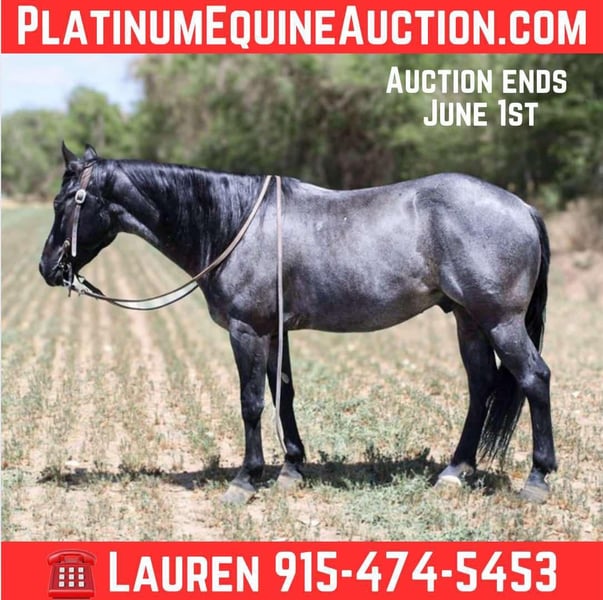 ONLINE AUCTION Place your bids at www.PlatinumEquineAuction.com Starting Bid $3500 Auction ends June 1st, 2025 Need a new saddle? Check out White Rock Saddles on our website or Facebook! Smurf is the ultimate all-around horse ,offering a rare combination of gentleness, athleticism, and versatility that makes him the perfect choice for any family. At 5 years old and a stocky built 14h this true blue roan is a perfect step up pony for a youth rider or for someone that wants a smaller compact horse. Smurf’s calm, patient demeanor makes him fun and easy to be around him. His gentle nature ensures that he is safe and approachable, providing confidence for riders, while his athleticism and intelligence allow him to excel in more advanced tasks. Smurf is not just a gentle companion; he is an incredibly versatile athlete, equally at home in the arena as he is on the ranch or on a trail ride. He has extensive experience in the roping pen, where he has been used for both heading and heeling in competitive roping events and has had professional reining training . Smurf is quick, responsive, and precise, making him a valuable partner in any roping situation. He has also worked around the barrels, and breakaway roping—always ready to take on any challenge thrown his way. But Smurf’s skills don’t end in the arena. He has been used extensively for ranch work, from pushing steers to navigating tough terrain, making him a dependable partner for any ranching task. His experience extends to diverse trail rides, where his surefootedness and steady temperament allow him to confidently handle any environment—whether it’s rocky trails, crossing streams, or long-distance rides through various landscapes. Above all, Smurf’s reliability is what truly sets him apart. He is known for his safety and consistency, even when faced with new or challenging situations. His calm, steady nature ensures that riders always feel secure, regardless of the setting. This makes him an excellent choice for families who want a pony/horse that can handle everything from casual leisure rides to demanding work tasks without skipping a beat. Smurf is, without a doubt, the most well-rounded pony/horse we have ever owned. His combination of safety, athleticism, and experience in multiple disciplines makes him a true asset to any family. Whether you’re looking for a pony for the arena, ranch work, or outdoor adventures, Smurf is ready to tackle it all. Don’t miss the opportunity to make Smurf a part of your family—he is ready to become the go-to pony for all your riding needs. Contact Lauren Lara 915-474-5453 Located in El Paso, TX. ONLINE AUCTION Place your bids at www.PlatinumEquineAuction.com Starting Bid $3500 Auction ends June 1st, 2025 Need a new saddle? Check out White Rock Saddles on our website or Facebook!