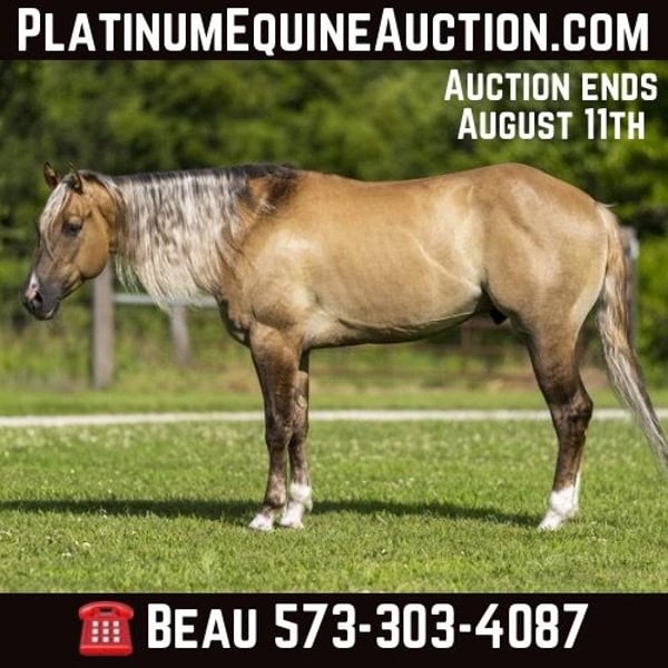 ONLINE AUCTION Place your bids at www.PlatinumEquineAuction.com Starting Bid $3500 Auction ends August 11th, 2024 Need a new saddle? Check out White Rock Saddles on our website or Facebook! Jacspins Little Pine is a 2020 model reg aqha Dunn gelding that stands 14.2 hands tall with 4 white socks and a beautiful long silver mane and tail! He has been trail rode all over the Midwest including Eminence Missouri and the Paloduro Canyon in Canyon, Texas. Jacs isn’t spooky and takes everything in strides he has been exposed to every thing under the sun from fireworks, dogs, kids, big trucks, trains and takes everything with ease and will go wherever you point him! Jacs is more woah than go until you ask him for more. He trailers well and takes overnight trips and weekends very well and always acts the same in new places. Jacs loves water and is an absolute joy to be around! He is utd on all vaccinations and sells 100% sound. Boone is located in Canyon, TX. Contact Broken S Equine Beau 573-303-4087 for more info. ONLINE AUCTION Place your bids at www.PlatinumEquineAuction.com Starting Bid $3500 Auction ends August 11th, 2024 Need a new saddle? Check out White Rock Saddles on our website or Facebook!
