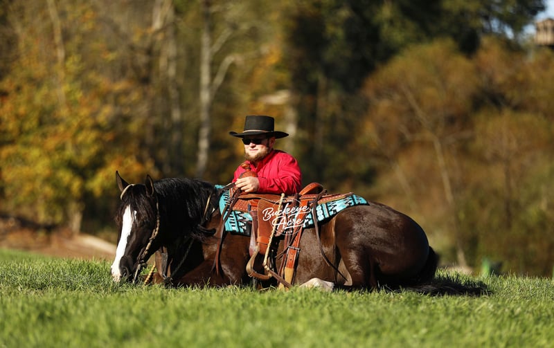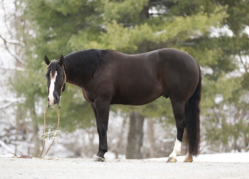 Prepare to meet a horse that truly has it all—Markett, a 2020 AQHA gelding standing a strong 14.2 hands, jet black with two white hind socks and a bold white blaze down his face. Correctly built, impeccably trained, and loaded with personality, he’s the kind of horse that instantly makes you smile just by being near him. Markett isn’t just a horse—you could call him a partner, a friend, and a superstar all in one. He’s been everywhere: from the ranch to the trails, from the show ring to Ranch Hand competition trails, and he handles it all like a pro. In fact, he was Top Horse in a Ranch Hand Competition out of 40 horses! Miles of trails, creeks, logs, fence lines—Markett takes it all in stride. Need a reliable horse to check cows, turn out horses, or just enjoy a peaceful ride? He’s your guy. This horse isn’t just about work—he’s about style, finesse, and smooth movement. Markett has very good, smooth gaits from walk, trot, extended trot, to canter. He knows his leads, executes smooth lead changes, neck reins, side passes, spins, and even a gorgeous sliding stop. Tarps, jugs, whips, arenas (indoor or outdoor)—he doesn’t flinch. He’s been ridden western, English, bareback, and even brideless. He’s truly a Buckeye Graduate through and through. Markett’s heart is as big as his talent. Beginner? Senior? Advanced? Doesn’t matter—he’ll meet you right where you are. Show him today, hit the trails tomorrow, and let the grandkids enjoy him next—he’ll slow his pace, lower his head, and care for them like a trusted babysitter. He’s the first to greet you at the barn gate and will patiently stand at your side until you’re ready. He’s Henry’s go-to horse for jobs big and small—and he’s always ready to impress. Up-to-date on vaccinations, deworming, and shoeing, Markett is ready to bring joy to his next family. Whether you ride once a week or just want a pasture companion that brightens your day, he’s the horse who makes everything better. Markett is more than a horse—he’s a story waiting to be shared, a partner for life, and a heart-stealer for anyone who meets him. Call Duane @ 330-231-2324 to see him in person and experience the magic firsthand.