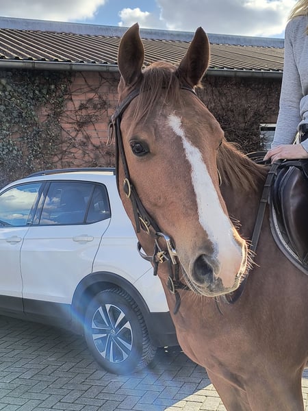 Electric Bumblebee aka Bumblebee 2020 QH Wallach Vater: Arc Sparkle Magnetic Mutter: Just Electric (von Jacs Electric Spark) ca. 1,48 m Stockmaß Bumblebee bringt eine solide Grundausbildung mit Schwerpunkt Reining und Ranch Riding mit. In den letzten zwei Jahren wurde er freizeitmäßig von mir als Anfängerin geritten und mit Unterstützung weiter gefördert. Er ist fein zu reiten, motiviert bei der Arbeit und zeigt sich lernwillig. Auch im Gelände ist er brav unterwegs und macht dort zuverlässig mit. Er kennt gute Bodenarbeit sowie Doppellonge und arbeitet aufmerksam mit. Charakterlich ist er ein aufgeweckter, freundlicher Wallach. Er ist sehr sozial, steht gerne draußen und ist gut verträglich mit anderen Pferden. 5Panel n/n getestet. Bumblebee wird aus Zeitmangel abgegeben. Gewünscht ist ein passendes Zuhause mit langfristiger Perspektive. Weitere Informationen gerne auf Anfrage.