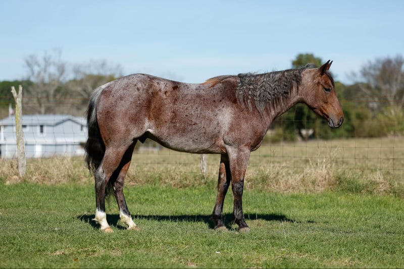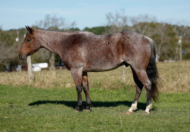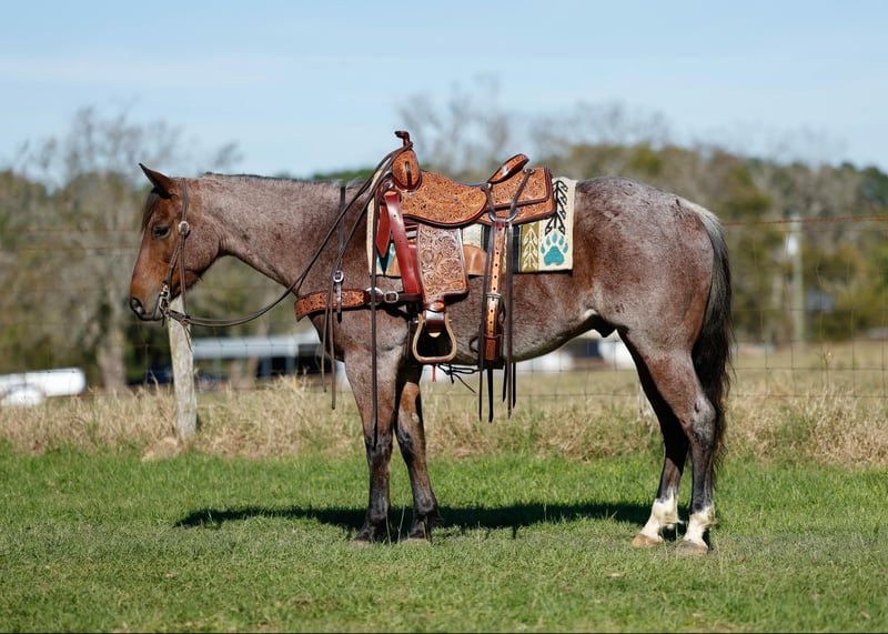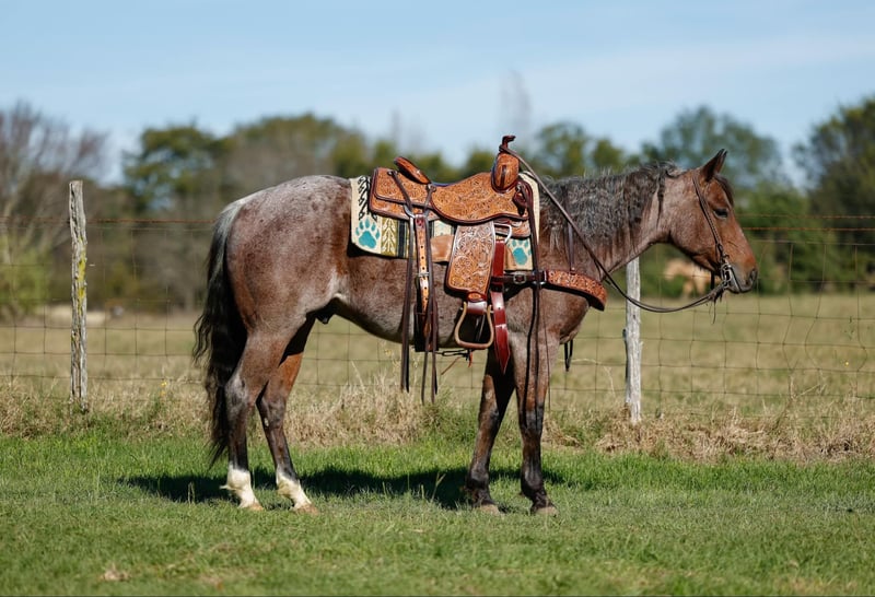 ONLINE AUCTION Place your bids at www.PlatinumEquineAuction.com Starting Bid $3500 Auction ends December 15th, 2024 Need a new saddle? Check out White Rock Saddles on our website or Facebook! Sparkin With Pepto AKA Pepto is a coming 5 year old (2020 model) registered AQHA bay roan gelding, this super cute gelding stands 14.3 hands tall. Pepto is sweet and gentle to be around, he has a good start on him, he lopes nice circles in the arena and is soft in the face and easy to ride. Pepto has also been rode outside, he crosses the creeks and goes where you ask him. He has also been used for basic ranch work, he has been used to gather, pen and sort cattle!Pepto is very smart and willing to learn and would excel in any direction you choose to take him. He is located in Rusk TX, nationwide shipping is available! Call or text TR Livestock Rachel 605-370-4644 for more info. ONLINE AUCTION Place your bids at www.PlatinumEquineAuction.com Starting Bid $3500 Auction ends December 15th, 2024 Need a new saddle? Check out White Rock Saddles on our website or Facebook!