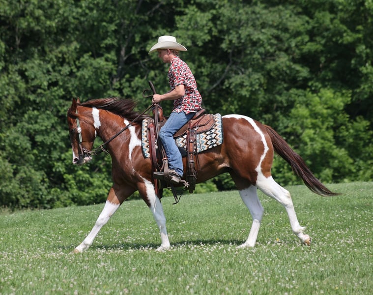 ONLINE AUCTION Place your bids at www.PlatinumEquineAuction.com Starting Bid $3500 Auction ends June 9th, 2024 Need a new saddle? Check out White Rock Saddles on our website or Facebook! Isaac is a well built Chestnut Tobiano gelding standing around 15-15.1hh and he is 4 years old. Issac has been used around the ranch and he has done some of everything. He is handy enough for sorting or he can go out in the pasture and be roped off of! Isaac is an excellent trail horse and has been ridden in multiple states from Texas to Kentucky. He will cross creeks, ditches, logs and navigate rough rocky areas. He is safe riding in traffic. He has a smooth jog, a very smooth lope, has a good stop, turns a circle both ways and backs with ease! Isaac is a confident horse on the trails and will lead the crew, head out alone with no issues! He has been exposed to all kinds of wildlife such as deer or turkey or other animals like cows or dogs and will go anywhere that he is asked too. He has been rode many miles in the mountains of Eastern Kentucky and encountered every obstacle possible on the trail. He will go up or down even the steepest slopes, across deep creeks, over downed trees, and over all types of rough terrain while still being sure footed. Isaac is not cinchy, cold backed, does not crib or weave. Issac has his whole life ahead of him and is looking for a partner to hit the trails with or a ranch to call home!!! Feel free to call Moore Trained Horses Logan 765-265-0033 with any questions. Located in Level Green, KY. ONLINE AUCTION Place your bids at www.PlatinumEquineAuction.com Starting Bid $3500 Auction ends June 9th, 2024 Need a new saddle? Check out White Rock Saddles on our website or Facebook!