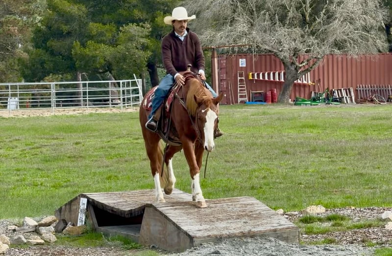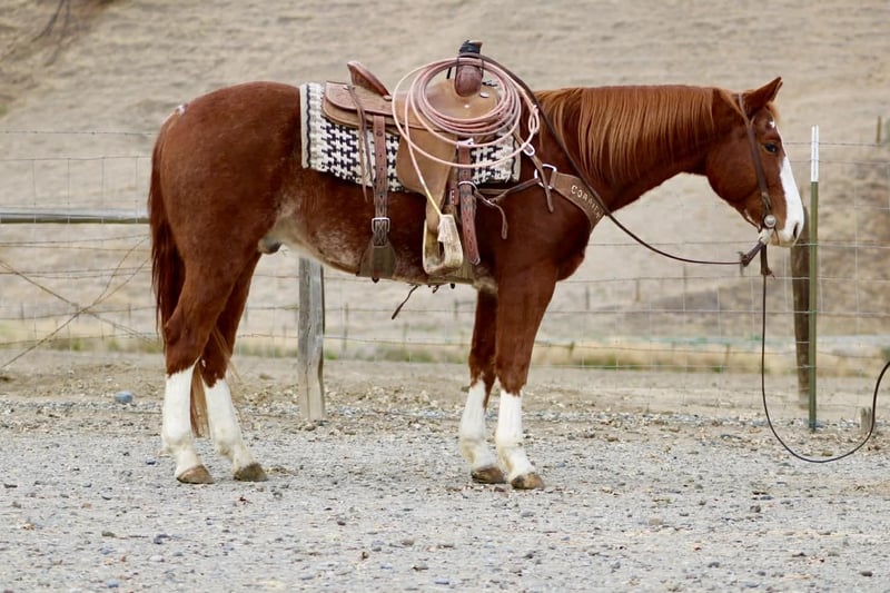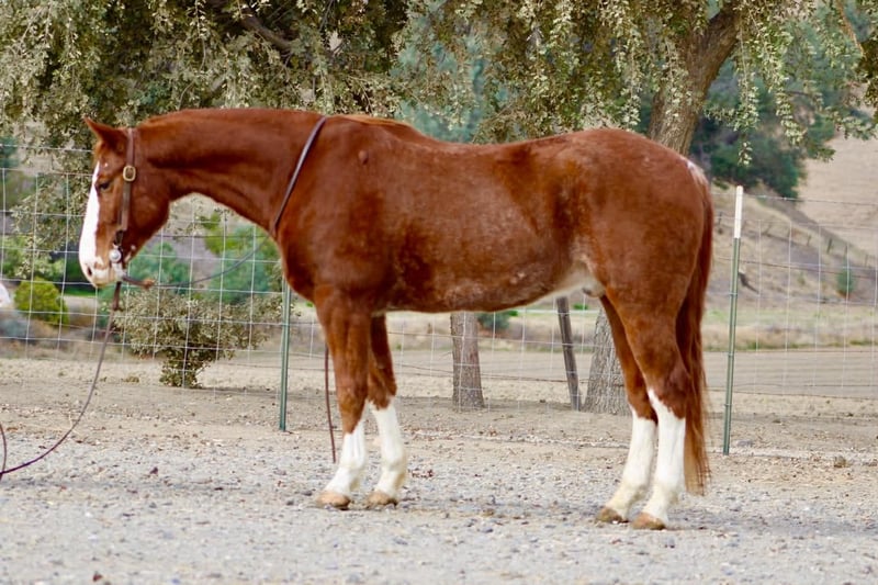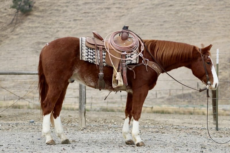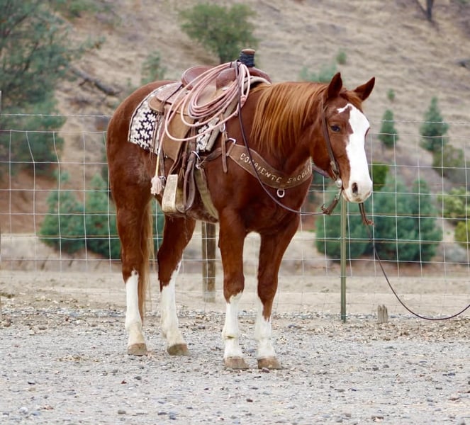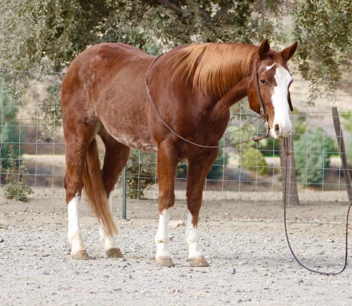 ONLINE AUCTION Place your bids at www.PlatinumEquineAuction.com Starting Bid $3500 Auction ends November 30th, 2025 Need a new saddle? Check out White Rock Saddles on our website or Facebook Doc Holiday – The Gentleman’s who will steal your heart! If there was ever a horse that could rob your heart and ride off into the sunset with it — it’s Doc Holiday. This red roan gelding is as striking as they come, with a bold bald face, four white socks and that cool splash of roan with every stride, and a coon tail that would make any show ring jealous. He’s the kind that makes people slow their trucks on the highway just to get another look. But looks aren’t what make Doc special — it’s that easy, old-soul attitude. At 5 years old and standing a handy 15 hands, he’s kind, honest, and absolutely steady. He’s been used all over the ranch — doctoring, sorting, and checking pastures — and he takes it all in stride. He’s traffic-safe, flag-proof, balloon-proof, and obstacle approved. Ride him alone down the road or out in a crowd — he’s as cool as a poker player holding a royal flush. He’s a beautiful mover with a collected way of going that turns heads in the arena and eases up any country outside. Water, brush logs or narrow paths he will compass his way through it. Fancy enough for the show pen, broke enough for ranch work, and gentle enough for the whole family. Doc has a smooth stop, nice turnaround, and a brain that always says “yes, ma’am.” Whether you want to look good doing a job or just enjoy the ride, Doc Holiday is the kind of gelding that does it all — with style, grace, and just a touch of charm. Longhorn Ranch – Paicines, California Dina – (831) 537-1915 Nationwide shipping nation wide. ONLINE AUCTION Place your bids at www.PlatinumEquineAuction.com Starting Bid $3500 Auction ends November 30th, 2025 Need a new saddle? Check out White Rock Saddles on our website or Facebook