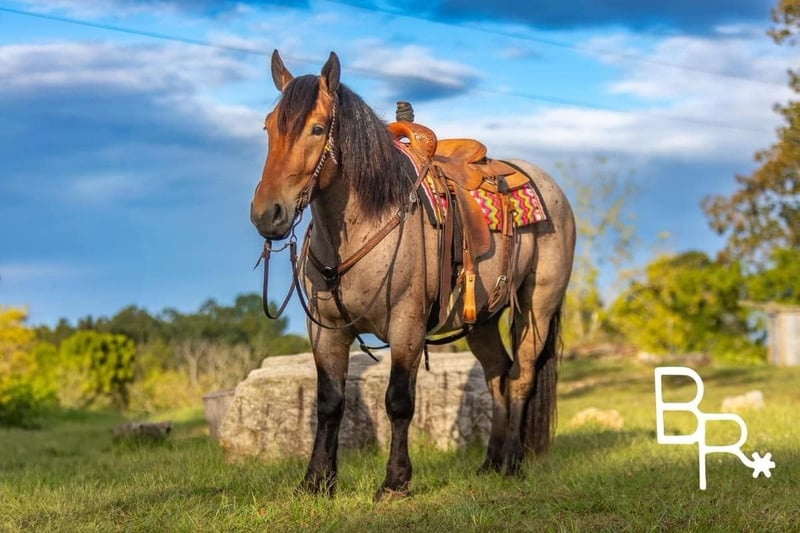 ONLINE AUCTION Place your bids at www.PlatinumEquineAuction.com Starting Bid $3500 Auction ends October 27th, 2024 Need a new saddle? Check out White Rock Saddles on our website or Facebook! Everyone meet Ernie….This absolutely stunning unicorn is what dreams are made of! He is a bay roan Percheron/QH cross standing 15 hands tall and 4 years of age. This is one of the kindest and safest horses to ever come through our program. I truly believe anyone who wants to ride, can ride this horse. He has three soft and easy gaits that are very smooth to ride. Does all of the obstacles out on the trail. Does it all in stride and with ease . Nothing bothers this horse he will go and do anything with no fuss. Has been used at local rodeos to carry the flag at opening ceremony. Also as a pickup horse for youth rodeo. Ernie has been to the little town of Mt. Grove Missouri on his days off. Where he is seeing all the sites around town and entertaining families for pics and rides. He is truly a kind hearted unicorn. We have started him over fences which he enjoys. Please watch our must see video. .You will be entertained for sure.Ernie is totally UTD on farrier,dental,vetting and has all vaccines and necessary paperwork ready to go. Has a clean vet inspection from our licensed veterinarian. We have professional shipper’s that we use. That can haul horses nationwide. Ernie is located in Mountain Grove, MO. We encourage customers to come out and try our horses. Call for more information Beaver Ranch Mike 410-490-7384. ONLINE AUCTION Place your bids at www.PlatinumEquineAuction.com Starting Bid $3500 Auction ends October 27th, 2024 Need a new saddle? Check out White Rock Saddles on our website or Facebook!