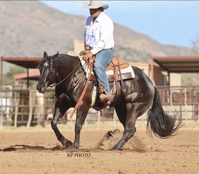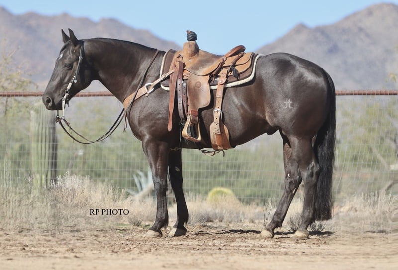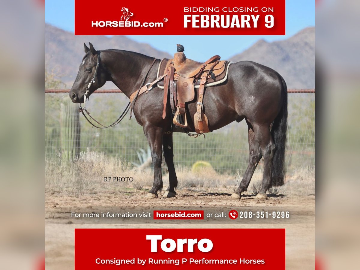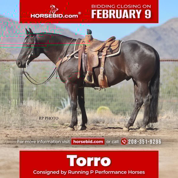 ❤️🔥𝑩𝒆 𝑴𝒊𝒏𝒆 𝐒𝐄𝐋𝐄𝐂𝐓❤️🔥 Happening now thru MONDAY | FEBRUARY 9th - Available EXCLUSIVELY on HorseBid's website! For more details and to register visit: www.Horsebid.com CONSIGNOR CONTACT: Running P Performance Horses 208-351-9296 LOCATION: Congress, AZ BREED: Quarter Horse REGISTERED: Yes REGISTERED NAME: BLACKLIST COLOR: Black HEIGHT: 15 AGE: 6 GENDER: Gelding To be in the presence alone of this gelding is truly something special. We couldn’t be more proud to offer BLACKLIST, a 2020 jet black gelding sired by LATE NIGHT STOPPER and out of an own daughter of Smart Little Lena. Late Night Stopper himself was an NRHA earner of $100,000+ and is siring exceptional offspring that excel from the reining to the roping. “Torro” excels in any aspect that is thrown at him, standing just a tick under 15 hands, he is the kind you could stare at for hours, the presence Torro carries is truly one of a kind and he gets noticed everywhere he goes. He is a true dream horse with a mane that flows past his neck and a gorgeous thick tail to match. Besides his jet black color, Torro is a conformationally correct, heavy built gelding with a big hip and shoulder. Fully trained in all maneuvers, Torro is push button, he has been enjoyed by seasoned professionals to the most inexperienced riders. He is one that can truly plus all maneuvers! He is a huge stopper, lay your rein on his neck and say “whoa” he will give you a big deep slide stop every time. Torro is automatic, he has great spins, circles on a draped rein, and is extremely confident yet attentive to his rider. Torro has been successfully shown in the reining, he is automatic and loves to work, effortless lead changes, flawless transitions and is extremely soft in every way. He always aims to please and gives 100% try in every task that is thrown his way. Torro is showing promise on the head side that is hard to come by. He has a ton of run, reads the cow throughout the entire run, strong to the horn, and is great in the box. Torro has all the qualities it takes to make a great one, and he is well on his way. He would be a true standout in the rope horse futurities and is the ideal size for a World Series barrier. You would be hard pressed to find another that is as correct and flashy as he is on the head side. Torro will work a cow and would be a true standout in ranch versatility classes as well. Truly a point and go, Torro will cross any bridge, downfall, logs or water with ease, all while being attentive to where his feet are. Torro has packed kids of all ages on the trail, and in the arena. He is extremely patient and forgiving, and a huge confidence builder, no matter how much time he’s had off. Torro genuinely loves people, he will literally run to meet you at the gate. He is a dream to clip, shoe, bathe, haul, etc. and just genuinely loves attention. We absolutely adore this gelding, he is in the prime of his life and ready to make someone’s dreams come true! We encourage anyone interested in Torro to watch his YouTube video, it truly shows what an outstanding individual he is. We are so proud to offer this gelding, please feel free to contact (208)351-9296 or (208)690-9766 with any questions.
