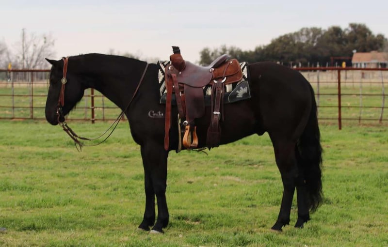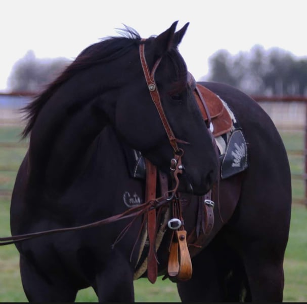 ONLINE AUCTION Place your bids at www.PlatinumEquineAuction.com Starting Bid $3500 Auction ends March 9th, 2025 Need a new saddle? Check out White Rock Saddles on our website or Facebook! Say hello to this stunning gelding name Bentley that we call Benz ! He will sure enough get all the attention around being 15 hands tall and jet black. He’s a 5 yr old gelding off the coats ranch. Benz is the first one to the gate to greet you and loves attention. He’s gentle to shoe, haul and loves a good bath in the summer. He’s been used in every aspect of ranching making him ideal for your next ranch; or trail gelding! Not to mention he doesn’t get bothered by traffic or commotion around him. He is very willing going down the trail and goes where ever he’s pointed over big hills, creeks or rock patches. Located in Lipan, TX. We can help arrange shipping anywhere in the US, Hawaii, Canada Please call or text Makenna Hartzell 817-659-3778 for more information. ONLINE AUCTION Place your bids at www.PlatinumEquineAuction.com Starting Bid $3500 Auction ends March 9th, 2025 Need a new saddle? Check out White Rock Saddles on our website or Facebook!