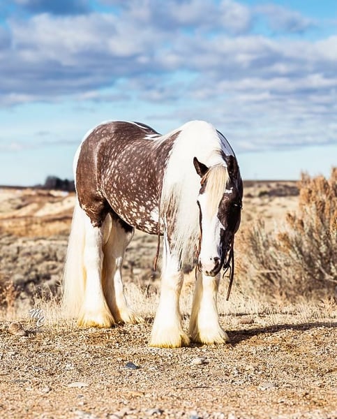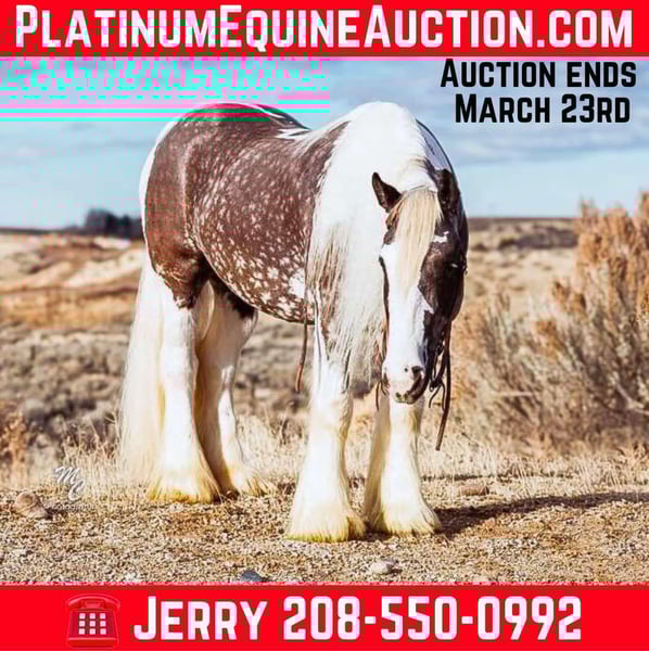 ONLINE AUCTION Place your bids at www.PlatinumEquineAuction.com Starting Bid $3500 Auction ends March 23rd, 2025 Need a new saddle? Check out White Rock Saddles on our website or Facebook! ASHL Deuteronomous Cupid is a registered, 2020 model, Gypsy Vanner, Gelding, that is standing around 15HH and he is a RARE Silver Dapple Paint color!!! Cupid just like his name would suggest he will steal your heart. I’ve been blessed to own and ride some incredible Gypsy’s and Cupid is definitely at the top of the list. He is amazing! Calm, cool customer in any situation who absolutely adores the attention you give him. His heart will melt yours with his kind disposition. Cupid is broke the very best whether you’re in the arena out on the ranch or riding down Main Street he’s done it and will please. Cupid handles around like a broke horse should he’s soft in his face and sides without being overreactive or jumpy. He’s EASY and uncomplicated with a good neck rein, stops on a dime, and will turn around nicely. Will side pass both ways and pick up his leads from a standstill. His lope is smooth to ride all day. He will collect and has been under English tack as well. Cupid is trained to lay down with a tap on the shoulder he’s very simple to cue and our kids love to lay him down for mounting and dismounting. He is 1000% safe and honest. From little kids to great grandpa everyone can ride him no matter what the task is. This is the kindest horses you will ever meet. Cupid will make you smile every day you own him and is definitely a family favorite of ours. Located in Wickenburg, AZ. For more info contact J Arrow Livestock Jerry 208-550-0992. ONLINE AUCTION Place your bids at www.PlatinumEquineAuction.com Starting Bid $3500 Auction ends March 23rd, 2025 Need a new saddle? Check out White Rock Saddles on our website or Facebook!