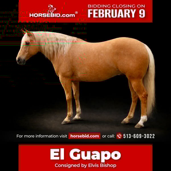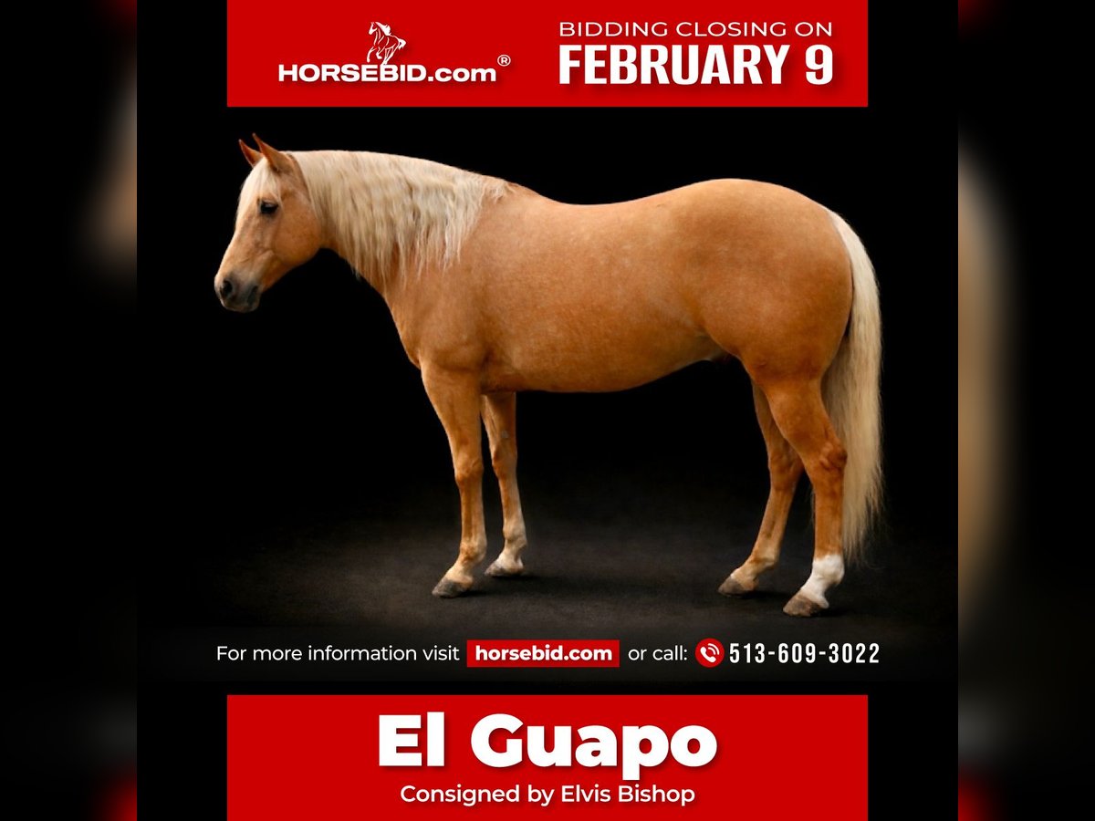 ❤️🔥𝑩𝒆 𝑴𝒊𝒏𝒆 𝐒𝐄𝐋𝐄𝐂𝐓❤️🔥 Happening now thru MONDAY | FEBRUARY 9th - Available EXCLUSIVELY on HorseBid's website! For more details and to register visit: www.Horsebid.com CONSIGNOR CONTACT: Elvis Bishop 513-609-3022 LOCATION: Lebanon, OH BREED: Qh REGISTERED: Yes REGISTERED NAME: Mr peppy sandrift COLOR: Palomino HEIGHT: 15.1 AGE: 6 GENDER: Gelding El Guapo is a once in a lifetime horse that would fit anybody’s program from a novice rider to a professional horseman. He is such a joy to ride whether you want to use him for ranch work, team roping, trail riding, mounted shooting or sorting or anything else, he will check all the boxes! He is gentle for anybody and anyone that can hold the reins can ride him! He has a great handle and a big stop! He is the same every time you get on him and will go wherever you point him and he will never get hot or prancy! He has absolutely no buck in him at all and he is 100 percent sound and has no bad habits, and you will love him when you get him home! I’ll totally stand behind this horse! Make sure you watch the video of him until the end it’s definitely worth it!