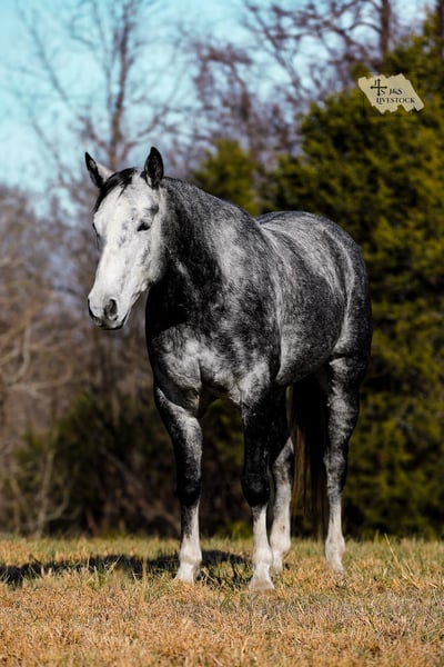 𝐉𝐀𝐍𝐔𝐀𝐑𝐘 ⭐️𝑨𝒍𝒍 𝑺𝒕𝒂𝒓 𝑳𝒊𝒏𝒆𝒖𝒑⭐️ Happening now thru MONDAY | JANUARY 26th - Available EXCLUSIVELY on HorseBid's website! For more details and to register visit: www.Horsebid.com CONSIGNOR CONTACT: J&S Livestock 931-242-7226 or 931-698-7159 LOCATION: Santa Fe, TN BREED: Quarter Horse REGISTERED: Yes REGISTERED NAME: TEE JS TUFF ONYX COLOR: Dapple Iron Grey HEIGHT: 15.1 AGE: 6 GENDER: Gelding TEE JS TUFF ONYX Meet Tuff- a stop you in your tracks, drop-dead gorgeous iron grey gelding, with the sweetest soul you could want. With such beautiful confirmation, lovely headset, and the kindest eye you can see from the moment you meet him comes with an even better attitude- he is always so willing with whatever you ask of him and is always up for learning new things, even if it may be challenging. He is definitely an in-your-pocket type gelding, he loves attention and soaks it all in. He wants to be your friend and please you all in one. Standing 15.1 hands tall and 5 years old, Tuff sure has seen a lot at a young age. He has great manners- easy to catch, bathe, saddle, ties quietly, and loads in and out of the trailer great. He does good turned out or stalled- he does tend to appreciate the head scratches that comes with being stalled from time to time! Aside from his wonderful temperament, he is an excellent trail/ranch horse. He is safe and steady on various terrains and navigates through it all like a pro- deep water, fallen down timber, slippery and rocky ground, etc. He is strong, stout and very capable of carrying any rider with ease. Tuff also handles well to noisy traffic or loud machinery. He even handles mini donkeys/ ponies out in the pasture squealing and trying to chase you, with such kindness! Lol. He has also done some ranch work where we have personally used him to check cows and to push cattle around with. We have used him lightly to rope some calves out in the pasture on as well. I personally feel Tuff would excel great into several different disciplines if you choose to take him in that direction, and is at that perfect age to still learn new things! He is responsive, moves off leg pressure, and has nice, comfortable gaits. You can ride him on a beautiful loose rein or by making more contact you can ride him more direct- whatever you choose. With that being said, Tuff is an excellent, brilliant minded, and kindhearted gelding that anyone would be proud to own. He truly is a pleasure that we are proud to offer. Tuff is 100% sound and has a very recent PPE (1-6-2026) and passed with flying colors. If you have any more questions on Tuff, don’t hesitate to reach out at anytime! Bailey 931-242-7226.