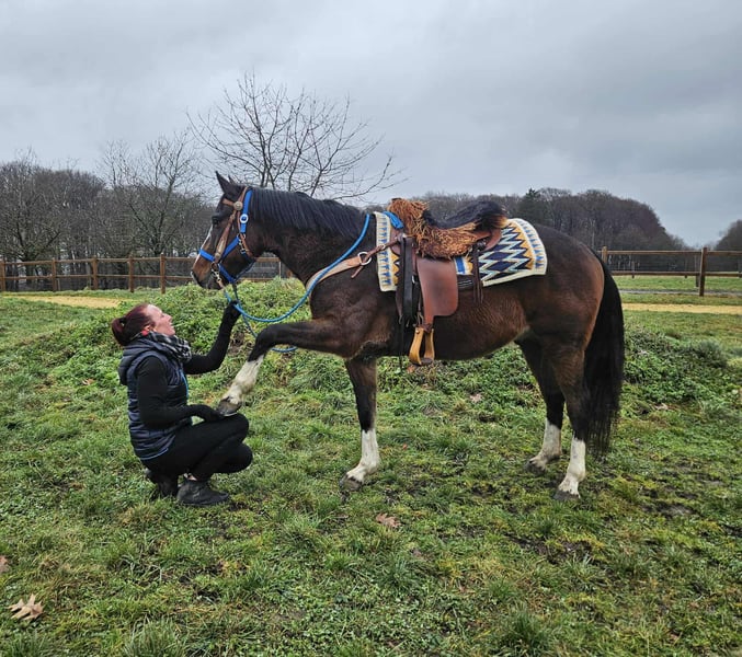 Quarter-Mix Wallach – brav, gelassen & zuverlässiger Freizeitpartner THOR Alter: 6J. Stockmaß: ca. 1,57 m Preis: 6.900.- AKU: Vorhanden ✨ Beschreibung: Dieser hübsche Quarter-Mix Wallach überzeugt durch sein ruhiges, freundliches Wesen und seine große Zuverlässigkeit. Im täglichen Umgang ist er super brav, unkompliziert und angenehm im Handling. Unter dem Sattel zeigt er sich sehr nett zu reiten, kooperativ und ehrlich. Er vermittelt seinem Reiter ein gutes Gefühl und macht einfach Spaß. Besonders für Ausritte und Wanderritte ist er bestens geeignet – er ist geländesicher, ausgeglichen und genießt lange Strecken ebenso wie entspannte Ritte. Ein idealer Partner für alle, die ein verlässliches Freizeitpferd suchen, mit dem man stressfrei Zeit verbringen und die Natur genießen kann. Kein Sportpferd, sondern ein ehrlicher Kumpel fürs Leben. Ideal für: Freizeitreiter, Wanderreiter oder Wiedereinsteiger, die ein braves, entspanntes und zuverlässiges Pferd suchen. Unsere Pferde werden regelmäßig: – entwurmt – vom Schmied betreut – osteopathisch kontrolliert Unser Service: ✅ 3 Monate Umtauschrecht ✅ Proberitt: 35 €, jedes weitere Pferd 25 € (beim Kauf am selben Tag angerechnet) ✅ 100 € Sofort-Rabatt bei Abholung/Transport am gleichen Tag ✅ Persönliche & ehrliche Beratung Transport kann auf Wunsch günstig organisiert werden Anfragen bitte ausschließlich telefonisch: 0171 – 4001968 täglich erreichbar von 8–20 Uhr ⚠️ Keine E-Mail oder WhatsApp ⚠️ Alle Angaben ohne Gewähr