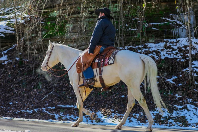 ONLINE AUCTION Place your bids at www.PlatinumEquineAuction.com Starting Bid $3500 Auction ends January 26th, 2025 Need a new saddle? Check out White Rock Saddles on our website or Facebook! RCL Zans Magic Mike is a 2020 model, 15.2, Perlino, reg AQHA gelding. Mike is an all-around ranch/trail horse combo that’s as pretty and well-mannered as they come. I’ve had the pleasure of owning and using him around out operation. Mike has been used out in the pasture catching and doctoring, trail ridden literally hundreds of miles by every level of rider you can imagine. I’ve used Mike a substantial amount out in the pasture, and no matter how tight of a situation you put him in, he will always stay with you. Mike has also been in the rough country, on some of the toughest terrain and handles it all with ease. Mike is a horse that you can use for any job but the best part about him is that he is gentle and safe. MIke is a horse that we have used for lessons. He has had all ages on him even as young as 6, learning how to ride. He is the perfect horse for the whole entire family to enjoy for years to come! He is located in Santa Fe, TN. Anyone is welcome to come see him in person or we can facetime call and see him in live-time. For more info contact J & S Equine JT 931-698-7159. ONLINE AUCTION Place your bids at www.PlatinumEquineAuction.com Starting Bid $3500 Auction ends January 26th, 2025 Need a new saddle? Check out White Rock Saddles on our website or Facebook!