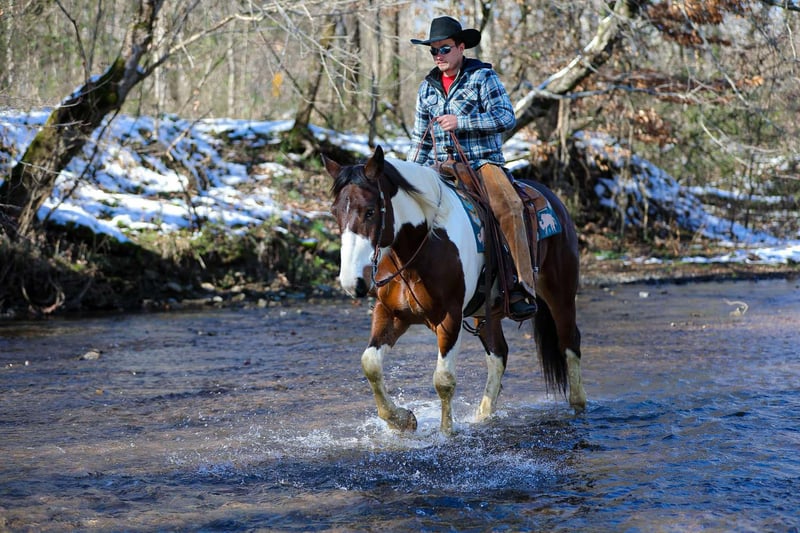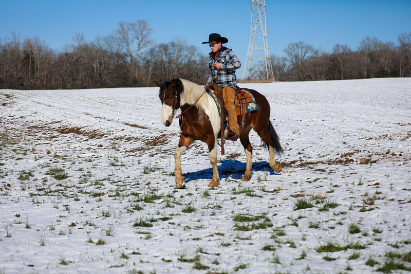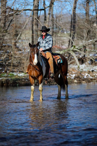 ONLINE AUCTION Place your bids at www.PlatinumEquineAuction.com Starting Bid $3500 Auction ends January 26th, 2025 Need a new saddle? Check out White Rock Saddles on our website or Facebook! Blaze is a good looking, fancy broke, 5 year old, bay tobiano, super stout built, draftcross gelding that aims to please. This is one that is a barn favorite to anyone who comes by whether it’s taking him for a swim or just feeding him treats in the pasture Blaze is sure to win you over. He stands right at 15.2hh and is spotted as good as yu can paint one! Blaze has been used for just about everything you could imagine doing on horseback. We have caught cattle, drug calves, snubbed colts, given roping lessons, done the obstacles and so much more. He is the definition of an all around gelding with a heart of gold. Blaze has been ridden hundreds of miles on a feeder calf operation and has been trail ridden in multiple states. He stands to be saddled, mounted and bathed. He’s one of the farriers favorite horses to shoe and will be one of your favorites to ride. He rides calm, quiet and safe with an attitude that’s always looking to please. He is located in Santa Fe, TN. Anyone is welcome to come see him in person or we can facetime call and see him in live-time. For more info contact J & S Equine JT 931-698-7159. ONLINE AUCTION Place your bids at www.PlatinumEquineAuction.com Starting Bid $3500 Auction ends January 26th, 2025 Need a new saddle? Check out White Rock Saddles on our website or Facebook!