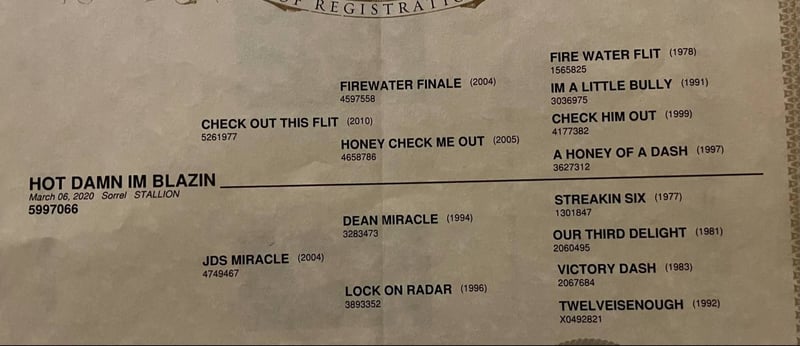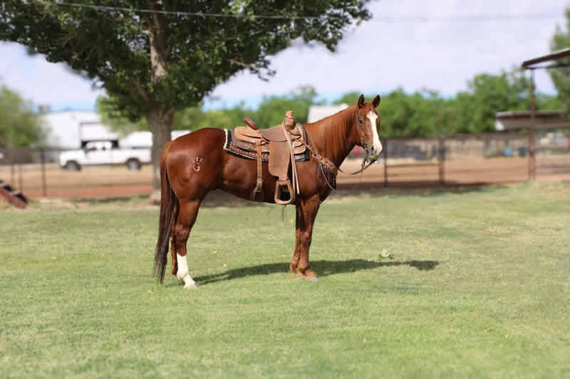 ONLINE AUCTION Place your bids at www.PlatinumEquineAuction.com Starting Bid $3500 Auction ends June 1st, 2025 Need a new saddle? Check out White Rock Saddles on our website or Facebook! HOT DAMN IM BLAZIN aka Hotty Is a fancy 5 yr old 15.3h tall, registered quarter horse gelding. His pedigree goes back to Firewater Flint on the top side and Steakin Six on the bottom. He’s been a joy to have in our program we’ve done a little bit of everything with him. He has been used on the ranch at a young age he has had lots of outside miles in rocky country and sandy hills, he’s extremely sure footed and knows how to travel in tough terrain. We also do a lot of arena riding. He’s a super solid head horse, he’s good in the box, he’ll score like a rock. Really easy to get along with. We have broke in lots of fresh cattle and hauled him to lower number jackpots. He’s been started on barrels, he’s really soft and is learning the pattern. He can make someone a super nice barrel horse he’s been started right and is ready to go on with. Hotty has the mind and temperament to be a high caliber barrel and head horse. He is a super smooth traveler and is a comfortable ride. He’s been the horse we use for everything he’s super well rounded and has been an important horse in our program . He has a great personality he wants to be your friend. Very easy to get along with. He’s an all around safe gelding that would fit anyones family or program. Hotty is easy to catch, saddle, shoe, load, unload and ties. He will ride through water, rides in traffic, good with dogs, bikes, other animals. He’s pretty laid back and easy going, He’ll be a a standout anywhere he goes. He is bred to fly and will take you to the pay window. Hotty can be your next performance horse! He sells sound. Please call for any questions you may have about Hotty thank you Contact Lauren Lara 915-474-5453 Located in El Paso, TX. ONLINE AUCTION Place your bids at www.PlatinumEquineAuction.com Starting Bid $3500 Auction ends June 1st, 2025 Need a new saddle? Check out White Rock Saddles on our website or Facebook!