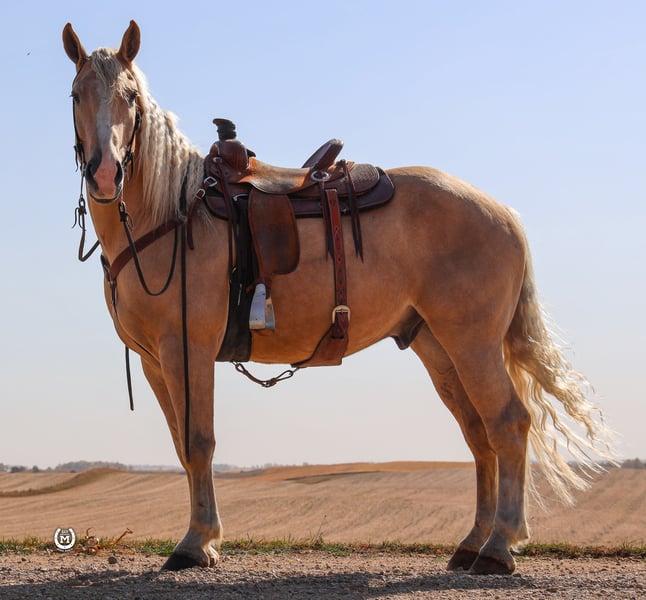 ONLINE AUCTION Place your bids at www.PlatinumEquineAuction.com Starting Bid $3500 Auction ends December 29th, 2024 Need a new saddle? Check out White Rock Saddles on our website or Facebook! Bar M’S Dallas is a gorgeous 2020 Palomino draft/ quarter horse cross gelding. He stands 16.1 hands tall. He is broke to ride the very best.He will take either lead and lope out of his tracks. He will stop and turn around like a 14.1 quarter horse. He had been ridden a lot in the arena and has hundreds of miles of trails under him. He has been used to direct traffic at large events. He will side pass to the mounting block. Dallas will lay down on command as well as sit up like a dog. He loads and hauls like a seasoned horse. Dallas will be the same horse every time he is saddled whether that’s every day or once a month. He stands for the farrier. Dallas loves his bath time as well. He has a huge heart and will work all day for whatever you ask of him. Dallas is sure to stand out with that beautiful Palomino color!! This big pretty gelding is suitable for just about any level of rider, making him a perfect fit for the entire family. Dallas is current on all his vaccinations. Please call Bar M Horse Ranch Tom with any questions at 507-360-6178 Located in Windom, MN. ONLINE AUCTION Place your bids at www.PlatinumEquineAuction.com Starting Bid $3500 Auction ends December 29th, 2024 Need a new saddle? Check out White Rock Saddles on our website or Facebook!