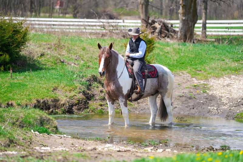 ONLINE AUCTION Place your bids at www.PlatinumEquineAuction.com Starting Bid $3500 Auction ends May 18th, 2025 Need a new saddle? Check out White Rock Saddles on our website or Facebook! Spirit is a 5 yr old, stunning red roan tobiano, draft cross gelding. He stands a magnificent 16.1 hands tall and weighs 1400 lbs. Spirit is an all around horse, he has done Christmas rides in multiple towns. He will ride out in a group or be great by himself. He crosses water, logs, down the busy highway, good in traffic, trails, been out after dark. Spirit is well trained to ride English or western. He also drives single or double. If you are looking for a horse that is big enough for the adults, and quiet enough for the children, definitely check him out. He has excellent ground manners, easy to catch, groom, bathe, stands good for the farrier, hauls and stalls great! Spirit can be turned out with other horses or stalled by himself. We have truly enjoyed every minute of Spirit and are excited to find him the perfect home where he can continue to shine. Horses like him don’t come around every day! Contact Rudy at R & R Regal Equine: 319-334-8649 to schedule a time to meet him, FaceTime , or just chat more about this once in a a lifetime horse! Located in Independence IA. ONLINE AUCTION Place your bids at www.PlatinumEquineAuction.com Starting Bid $3500 Auction ends May 18th, 2025 Need a new saddle? Check out White Rock Saddles on our website or Facebook!