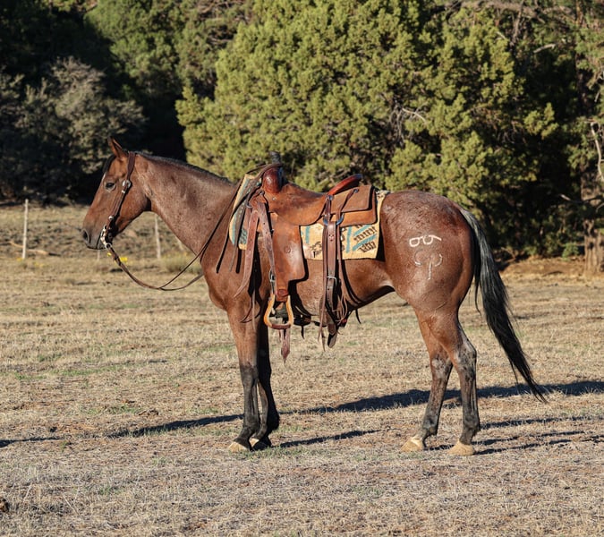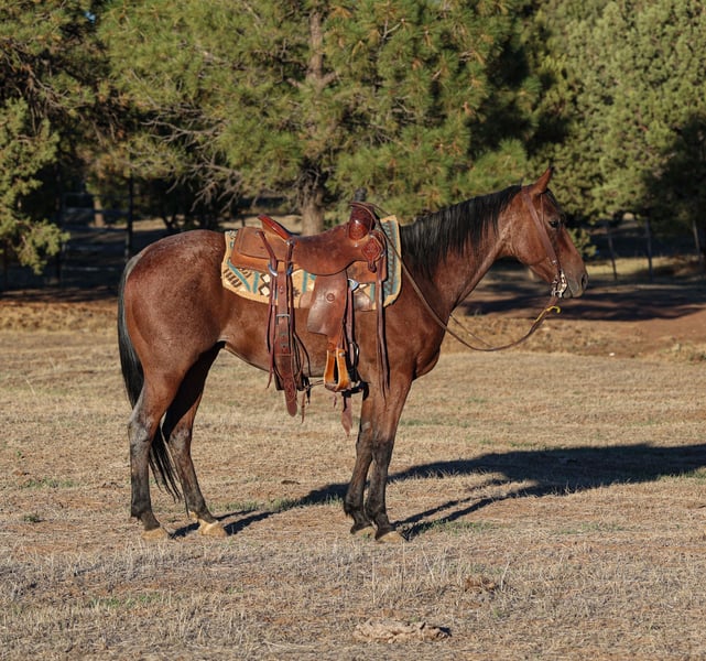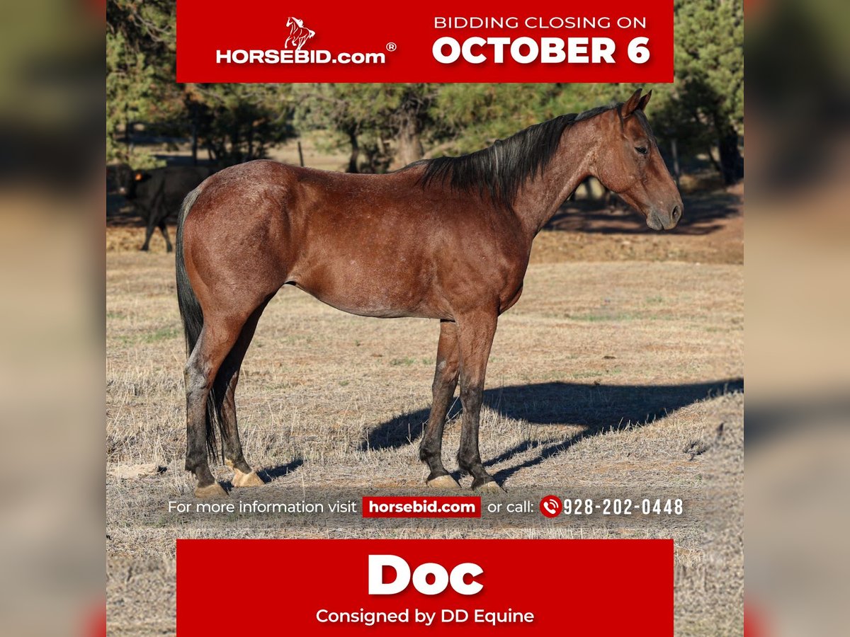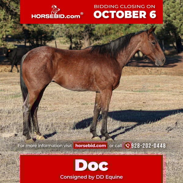 🍂 𝓐𝓾𝓽𝓾𝓶𝓷 𝑨𝑳𝑳 𝑺𝑻𝑨𝑹 𝑳𝑰𝑵𝑬𝑼𝑷 🍂 Happening now thru MONDAY | OCTOBER 6th - Available EXCLUSIVELY on HorseBid's website! For more details and to register visit: www.Horsebid.com CONSIGNOR CONTACT: DD Equine 928-202-0448 LOCATION: Camp Verde, AZ BREED: Aqha REGISTERED: Yes REGISTERED NAME: Doc Dallas Smart Glo COLOR: Bay roan HEIGHT: 14.1 AGE: 6 GENDER: Gelding Doc is a registered 6 year old bay roan quarter horse gelding! Doc stands 14.1 hands and is the definition of family safe! Doc is going to be more woah than go, he rides well in the arena, he catches both leads, has a smooth jog and rides one handed on a loose rein! We have had all types of riders on him, novice, timid and experienced riders. Doc is patient and kind, and knows how to take a joke. Doc rides out on the trail in confidence and will ride solo or in a group, he has no spook and is sure footed out on the rocky and steep trails. We have taken Doc to town and he isn’t phased by the chaotic town shenanigans, he has no spook to trash trucks, heavy street traffic or barking dogs. Doc loads in a trailer with ease and unloads like a champ at new places. Doc has been used out on the ranch and knows all the aspects of daily ranch chores. Doc has been started on the heel side and will track the dummy. Doc is easy to catch in his pen, and loves to be groomed and pampered, he has a puppy dog personality and loves all the attention he can get. He stands tied quiet, great for the farrier and waits to be saddled patiently. He sells with a current Coggins and Health and Lameness exam. For any further questions call us 928-202-0448 We can assist with Transport to anywhere in the U.S & Canada