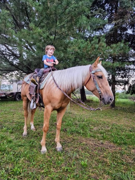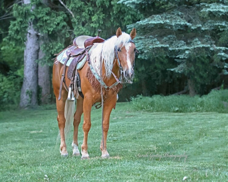 ONLINE AUCTION Place your bids at www.PlatinumEquineAuction.com Starting Bid $3500 Auction ends October 20th, 2024 Need a new saddle? Check out White Rock Saddles on our website or Facebook! Taris Crazy Cat Is a Dappled Palamino 2019 registered American Quarter horse mare that has the type of pedigree that most envy greatly! Her great grandsire on her dams side.. HIGH BROW CAT has produced over 82 MILLION doolars! Her other great grandsire on her dams side…PEPTOBOONSMAL has produced more than 27 MILLION dollars! Her grandsire on her dams side is BOONLIGHT DANCER…who has produced 1.5 MILLION dollars! Her Great Grandsire on her sires side is…DOC TARI who has produced 4 MILLLION dollars! Taris Crazy Cat earned her barn name Barbie simply from her gorgeous color, big round hip, and stocky physique. No matter where this mare goes she always turns heads as soon as she walks out of the trailer! Barbie may only stand a touch over 14.2 hh but, don’t let her size fool you she is built like a brick house and can out perform most horses much larger than her! She is also heavily reined cowbred and most of the more competitive horses in this discipline including the notorious. HIGH BROW CAT (Barbie boasts on her pedigree) stood half a hand shorter than Barbie is! With the foundation Barbie has on her she would be perfect for just about any discipline and she would make one heck of a future broodmare prospect down the road. She has been started on the flag, live cattle and shes also has been roped off of as well. She is a very willing responsive partner and has great verbal cues for when less experienced riders ride her. Barbie has an incredible knack for adapting to her riders riding ability and can go from carefully toting around a small kid to chasing down a cow without missing a beat. She has a smooth walk/trot/lope, knows how to change leads well, has an awesome sliding stop, a quick CORRECT spin, does rollbacks, and can be ridden with or without spurs or even a bit! She is a well broke mare that has been used for riding lessons in the arena or out on the trail! Barbie has also been on a 4 day 3 night trail ride at Pleasant Hill LAke Park where she put in over 35 miles. During that trip she was ridden by some beginners as well as some intermediate riders without issue. On one of the rides Barbie completed she rode all the way to Mt.. Geez during which she crossed roads, rivers, passed by cars/trucks, and went through some very rough terrain. Barbie is a very brave mare and will go any direction you point her. She is also very trustworthy when crossing a rivers, bridges, logs, muddy spots, up/down steep hills, or just through rough terrain in general. She also been ridden in English tack and will even go over jumps without hassle. Barbie has also been ridden by kids as young as 7 years old and lesson students are even able to practice getting her to bow on command, have ridden COMPLETELY bridleless, and even bareback without issue. Barbie will tie on a highline overnight, cross over over any obstacle and has very good manners. We have lots going on at our facility like tractors, cats, kids, dogs, side by sides, and even a back hoe and shes never been bothered by any of it. Barbie is a super sweet mare that gets along with just about any horses, even drafts, weanlings and ponies. If you’d like to schedule a day to come meet and ride her at our facility in Ashland Ohio, call or text Jonas Miller 419-512-7885. ONLINE AUCTION Place your bids at www.PlatinumEquineAuction.com Starting Bid $3500 Auction ends October 20th, 2024 Need a new saddle? Check out White Rock Saddles on our website or Facebook!