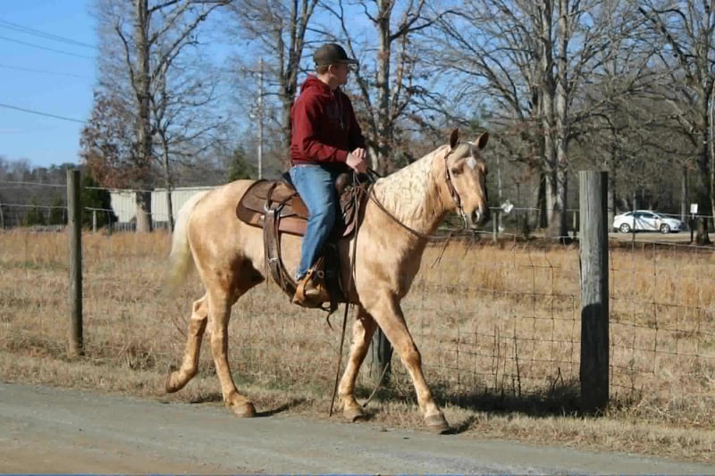 "AVAILABLE ON ONLINE HORSE AUCTION AT www DOT PlatinumEquineAuction DOT com BIDDING OPEN NOW thru SUNDAY | FEBRUARY 15TH! *Final price will be determined on auction site* CONSIGNOR CONTACT INFO: Maxwell Family Farms 704-689-9035 LOCATION: Cherryville, NC Zip is an 7 year old grade palomino gelding. He stands at 14.3 hands with a strong foot and sturdy build. He is easy on the eyes and has a great head on his shoulders. We have been trail riding all over the mountains of western NC! Zip will walk, trot, lope with ease and elegance. You can see how unbothered he is by anything you throw his way. He is gentle every day and suits anyone. Laid back enough for the trail rider to enjoy. Zip has an amazing personality anyone would love!! Don’t miss out on this handsome gelding! Sells 100% sound and sane. • Call Landon at 704-689-9035 for more info! - Also can schedule a FaceTime call to meet Zip! • Cherryville NC affordable shipping is available!