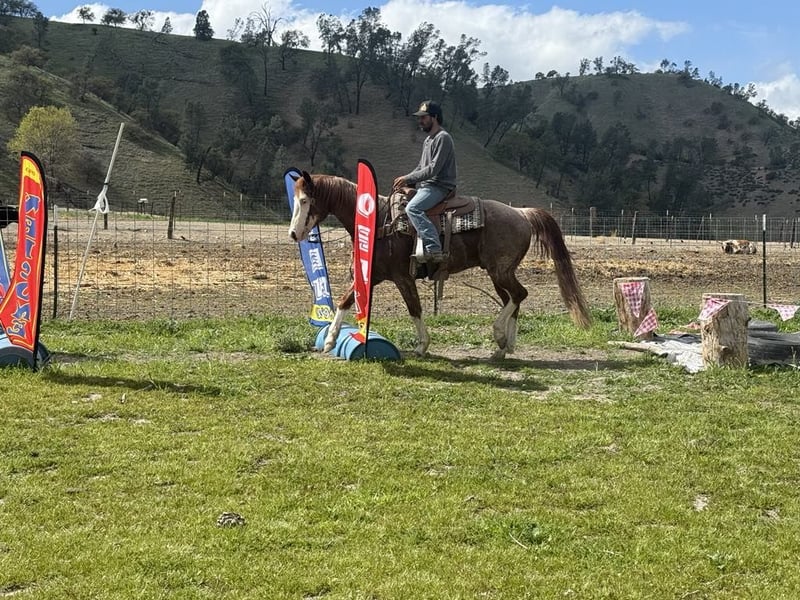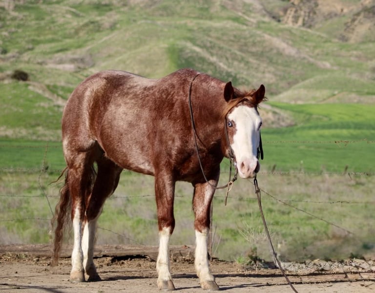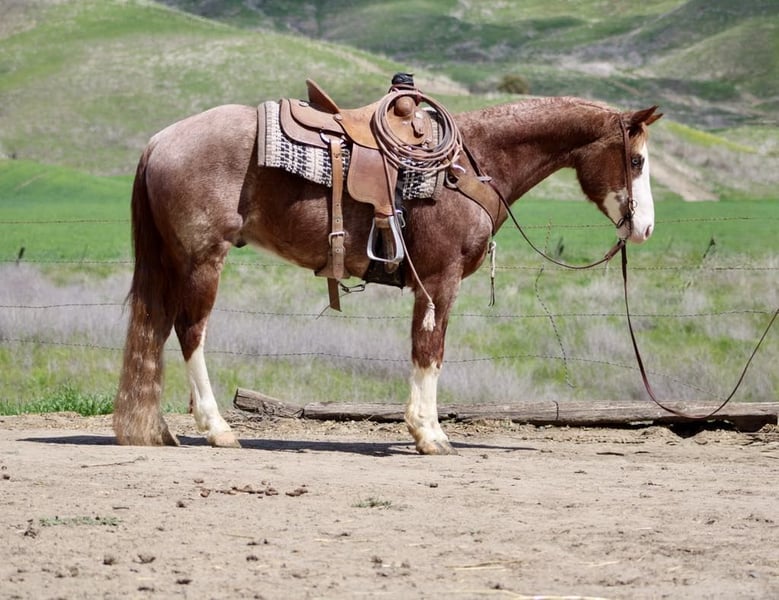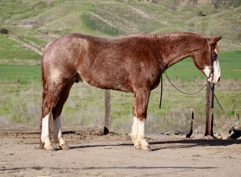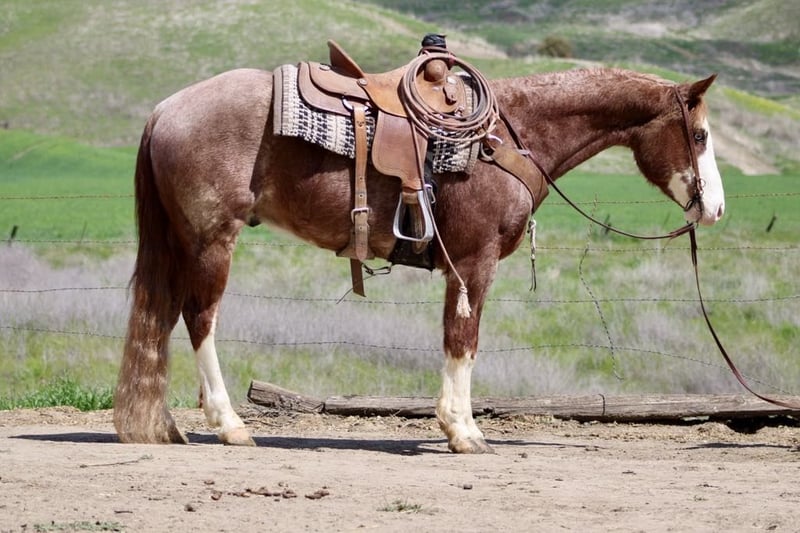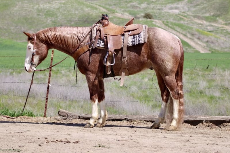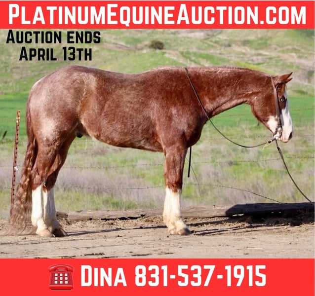 ONLINE AUCTION Place your bids at www.PlatinumEquineAuction.com Starting Bid $3500 Auction ends April 13th, 2025 Need a new saddle? Check out White Rock Saddles on our website or Facebook! Chrome is such a stunning horse! With those four high white socks and that beautiful bald face, he really stands out. His luxurious red roan coat shines in the sunlight, and his tail, which drags gracefully behind him, adds to his charm. At just six years old and standing at 15 hands, he’s not only gorgeous but also incredibly willing. He’s nicely broke, moves fluidly, and has that perfect headset that makes him a joy to ride. When he glides across the ground, it’s like watching poetry in motion. What I love about Chrome is his adventurous spirit. He’s curious yet cautious, making him easy to be around. Every day, he’s the same eager horse ready to please you. He thrives in cow work and would make a fantastic sorting horse. He’s been introduced to various obstacles like balls, tarps, and flags, and he handles them all with absolute confidence. Plus, he’s been ridden on busy roads and through vineyards, crossing railroad tracks without a second thought. It’s rare to find a horse like him, especially one that’s so versatile! Out on the trail, Chrome is a dream. He navigates all kinds of terrain with ease, crosses water without hesitation, and is comfortable whether he’s alone or with a group. He’s easy to clip, tie, and bathe, and loading him up for a trip is a breeze. If you’re looking for a horse that’s not just beautiful but also a true companion, Chrome is the one. This is a fantastic opportunity to make him a part of your life. If you’re interested, reach out to Dina at Longhorn Ranch at 831-537-1915, located in Paicines, CA. ONLINE AUCTION Place your bids at www.PlatinumEquineAuction.com Starting Bid $3500 Auction ends April 13th, 2025 Need a new saddle? Check out White Rock Saddles on our website or Facebook!