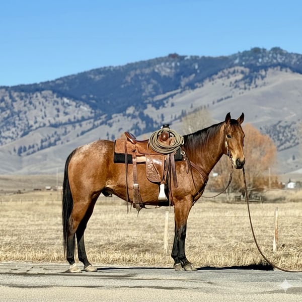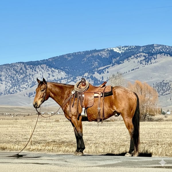 ℳ𝒶𝓇𝒸𝒽 ♦️𝐑𝐈𝐃𝐄𝐑'𝐒 𝐂𝐇𝐎𝐈𝐂𝐄♦️ Happening now thru MONDAY | MARCH 9th - Available EXCLUSIVELY on HorseBid's website! For more details and to register visit: www.Horsebid.com CONSIGNOR CONTACT: Flint Creek Quarter Horses 406-544-9987 LOCATION: Drummond, MT BREED: Quarter horse REGISTERED: Yes REGISTERED NAME: HL Olenas Peppy COLOR: Buckskin Roan HEIGHT: 15 AGE: 7 GENDER: Gelding HL Olenas Peppy is an AQHA registered gelding that stands 15 hands tall. He is a stunning buckskin roan that turns heads wherever he goes. He is extremely gentle and will come find you if you’re anywhere he can get to. He loves being around people and has a confident, kind disposition. Peppy is very broke and a pleasure to ride. He neck reins one-handed and goes wherever he’s pointed. He lopes nice, correct circles in the arena and picks up both leads with ease. He walks out well and has a smooth, comfortable trot. He has been used all over the ranch doing a variety of chores, including roping, sorting, and gathering cows in the hills. He’s the kind that can go all day without having to pedal him home. He offers a great combination of feel and hustle, yet stays kind and gentle enough for less experienced riders. Out on the trails he is confident and steady. He crosses water, downed timber, brush, and obstacles with no fuss. He has been on overnight camps and handled everything very well. He has zero buck, no pull back, and is easy to be around in every way. He is trained to step up to a mounting block or fence — just smooch to him and he’ll side step over to make it easy to get on. He trailers, bathes, and shoes well and has no bad habits. This is a really nice gelding in the prime of his life, ready to go to work. He sells 100% sound. If you think he might be a good fit, give us a call or text — we’d be happy to visit with you about him. Call Tom: 406-544-9987