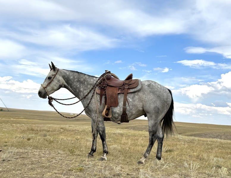 🍂 𝓐𝓾𝓽𝓾𝓶𝓷 𝑨𝑳𝑳 𝑺𝑻𝑨𝑹 𝑳𝑰𝑵𝑬𝑼𝑷 🍂 Happening now thru MONDAY | OCTOBER 6th - Available EXCLUSIVELY on HorseBid's website! For more details and to register visit: www.Horsebid.com CONSIGNOR CONTACT: Jeremy James 406-781-2227 LOCATION: Power, MT BREED: AQHA REGISTERED: Yes REGISTERED NAME: ROLLING ROYAL COL COLOR: Gray HEIGHT: 15 AGE: 6 GENDER: Gelding ROLLING ROYAL COL Meet “Amigo”. He is a 2019 AQHA gelding, standing at 15 hands. Amigo is quiet minded, eager to please and reliable in any situation. He’s an honest heart and has the ability to boost the confidence of any beginner or timid rider. He has been ridden by young and old riders alike and he always takes care of his “person”. He is very patient, especially with youth riders just starting out. If it’s learning to ride or learning to rope, Amigo is solid and steady. Even if you just need a “babysitter” for a while, he definitely fits the bill. I honestly can’t say enough good things about Amigo. Amigo is also steady and solid for your intermediate and advanced riders. He’s a great cow horse - ropes, sorts, side passes, doctors out in the pasture, opens gates and handles himself well under pressure in and out of the working pen. No challenge is too big for this boy. You can rope about anything - he knows his job. He’s a great partner at whatever task you set out to accomplish Amigo travels on any sort of terrain. He pushes cattle and a band of horses almost everyday on the ranch. He doesn’t barn or buddy sour, and rides off alone without hesitation. Amigo is use to cow dogs at his heels, and doesn’t get bothered by things along the way. He is the easiest to catch in any pen or pasture. He stands quiet for everything from grooming to saddling to shoeing. He definitely loves attention and the occasional treat! Amigo checks all the boxes as a great all-around dependable ranch and family horse who’s had lots of great experience. Amigo will be your lifelong buddy. Amigo is located in Power, MT - we are happy to help you get in contact with transport services for around the country. For more information call Melissa or Jeremy James at 406-781-2227.