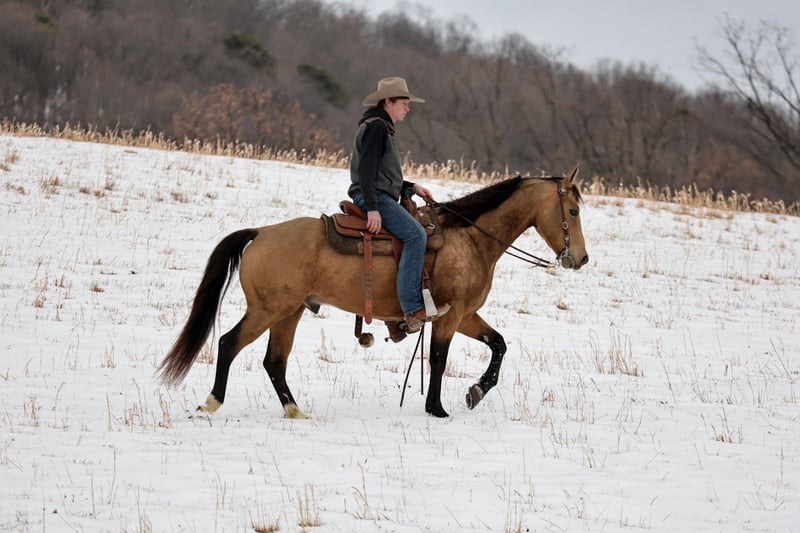 💎 𝐓𝐇𝐄 𝓓𝓲𝓪𝓶𝓸𝓷𝓭 𝐒𝐇𝐎𝐖𝐂𝐀𝐒𝐄 💎 Happening now thru MONDAY | FEBRUARY 23rd - Available EXCLUSIVELY on HorseBid's website! For more details and to register visit: www.Horsebid.com CONSIGNOR CONTACT: L&A Lonestar Equine 717-729-6193 LOCATION: Needmore, PA BREED: AQHA REGISTERED: Yes REGISTERED NAME: WQH Jess Cal Olena COLOR: Buckskin HEIGHT: 15.1 AGE: 7 GENDER: Gelding Fritz (registered as WQH Jess Cal Olena) is a sharp 7-year-old buckskin gelding standing 15.1 hands tall with the build, mind, and versatility to go in any direction. With cow-bred bloodlines, he naturally shows the athleticism and instinct you want in a performance prospect. Fritz is great on the trail as well as in the arena — confident, calm, and level-headed whether he’s alone or with other horses, handling new environments with ease. He rides around soft and handy with a great handle — soft in the face, moves easily off your leg, sidepasses, and has a nice stop. He’s comfortable and confident in the arena and has the ability to continue advancing in a performance program. Fritz has also been used around the ranch and is handy to have around cattle. He’ll open and close gates with ease and goes about his work quietly and willingly. With his cow breeding, athletic ability, and willing attitude, Fritz would make an excellent rope, breakaway, or barrel prospect, or continue on as a dependable ranch and all-around gelding. He is sound, an easy keeper, and ready for someone to take him to the next level.