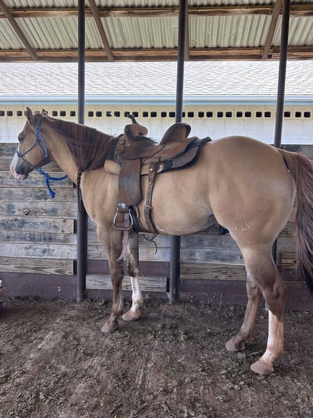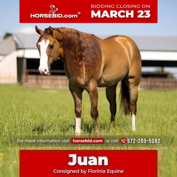 ⚜️𝓽𝓱𝓮 𝐆𝐎𝐋𝐃 𝓢𝓮𝓵𝓮𝓬𝓽⚜️ Happening now thru MONDAY | MARCH 23rd - Available EXCLUSIVELY on HorseBid's website! For more details and to register visit: www.Horsebid.com CONSIGNOR CONTACT: Florinia Equine 572-205-5282 LOCATION: Edmond Oklahoma BREED: Aqha REGISTERED: No COLOR: Dun HEIGHT: 15.2 AGE: 7 GENDER: Gelding Juan – 7 Year Old Dun Gelding Meet Juan, a stunning 7-year-old dun gelding that truly defines the phrase “does it all.” With his golden color, kind expression, and solid build, Juan is the kind that turns heads everywhere he goes. But his beauty is only the beginning — his mind, heart, and versatility are what make him truly exceptional. Juan is the type of horse everyone hopes to find. He is gentle, honest, and extremely broke, making him suitable for riders of many levels. He has the kind of steady mind that allows beginners to feel confident, yet he is talented and athletic enough to keep experienced riders smiling. Juan has been used for just about everything you can think of. He runs barrels, has been roped on, used for pasture doctoring, and has seen miles and miles of trail riding. He has also been shown in ranch trail, where his willing attitude and solid training really shine. One of Juan’s most impressive jobs has been working as a pony horse on the racetrack. Anyone familiar with the track knows that takes a special kind of horse — one that stays calm, steady, and dependable in busy, high-energy environments. Juan handles it all like a seasoned professional. He rides both English and Western, crosses obstacles confidently, and is the kind of horse you can take new places without worry. Whether you want to run barrels, rope, trail ride all day, or simply enjoy a reliable partner, Juan is happy to go to work. Most importantly, Juan has the kind of personality that makes people fall in love with him. He is kind, trustworthy, and absolutely bomb-proof, making him the type of horse you can enjoy every single day. Mane Disclosure Juan has always had a very long, thick mane. Unfortunately, a pasture mate recently chewed a large portion of his mane off during turnout in a single afternoon. The good news is Juan naturally grows exceptional hair, and it is already growing back thicker than ever. If you look at earlier photos you can see just how impressive his mane normally is, and it will absolutely grow back. Juan is the kind of horse people search years to find — safe enough for the family, talented enough for the arena, and beautiful enough to stand out anywhere he goes. Offered by Florinia Equine-dedicated to exceptional horses with heart, talent and versatility please feel free to give us a call! 572-205-5282
