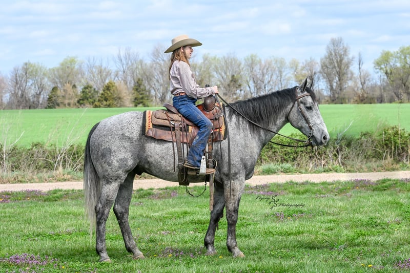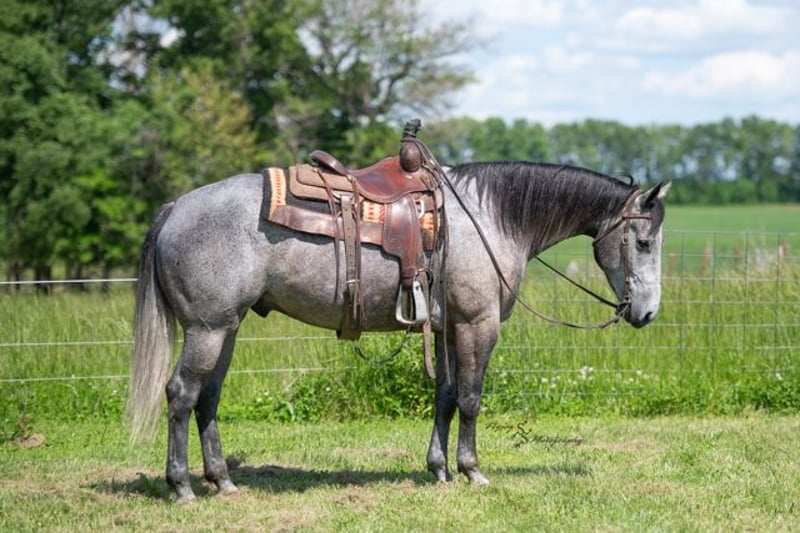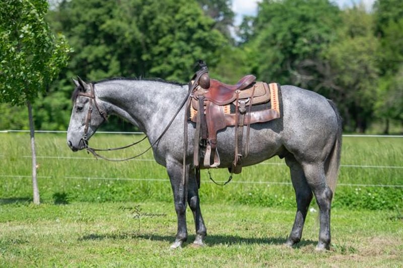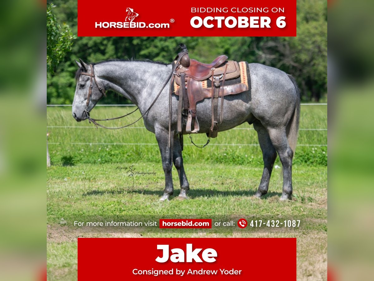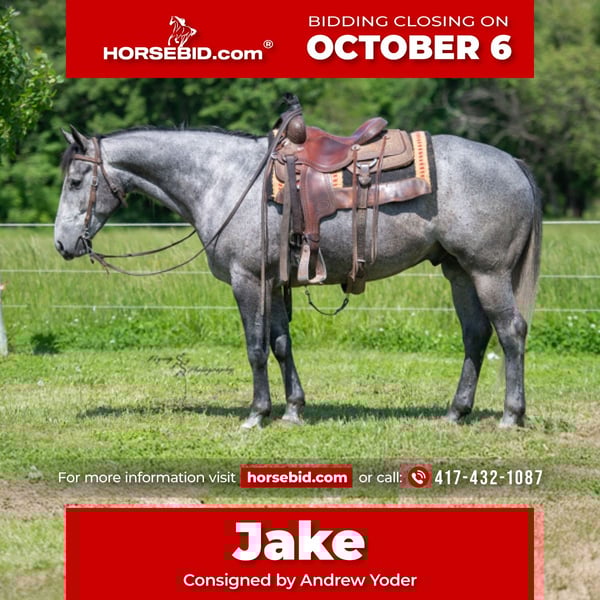 🍂 𝓐𝓾𝓽𝓾𝓶𝓷 𝑨𝑳𝑳 𝑺𝑻𝑨𝑹 𝑳𝑰𝑵𝑬𝑼𝑷 🍂 Happening now thru MONDAY | OCTOBER 6th - Available EXCLUSIVELY on HorseBid's website! For more details and to register visit: www.Horsebid.com CONSIGNOR CONTACT: Andrew Yoder 417-432-1087 LOCATION: Harwood, MO BREED: Quarter Horse REGISTERED: Yes REGISTERED NAME: Lunas Charmer Man COLOR: Gray HEIGHT: 15.2 AGE: 5 GENDER: Gelding Jake is an outstanding gelding that is an absolute pleasure to be around. He is perfect for the entire family. He has a nice enough handle to do any job with, as well as take to the show pen or arena. Jake is honest! Even with time off, he will saddle up and ride off without trouble. He is very forgiving when being ridden by a child or inexperienced rider. Jake is traffic safe and rides out great alone or with the group. He is an expert on the trails, crossing creeks, logs, and other obstacles with ease. Jake has a nice extended trot, picks up his leads on cue, lopes correct circles, has a nice stop, rides bridleless, works well in an arena or out in the wide open. He could easily excel in ranch show classes or make a solid ranch horse that the entire family can use. He is comfortable around other small/large livestock, pets, and small children. Jake is a very quiet, laid-back, safe gelding that is a gentleman for everyone. He does well stalled or turned out with other horses. He is easy to catch when turned out. Jake is easy to shoe and has good feet. If you're looking for an incredibly nice gelding, that's as honest as the day is long, look no further than Jake! If you have any additional questions, or would like to meet Jake prior to the auction ending, please do not hesitate to call Andrew at 417-432-1087.