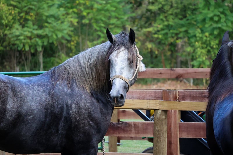 ONLINE AUCTION Place your bids at www.PlatinumEquineAuction.com Starting Bid $3500 Auction ends October 6th, 2024 Need a new saddle? Check out White Rock Saddles on our website or Facebook! This is “Austin”, A GREAT MINDED, PROFESSIONALLY TRAINED, and GENTLE DAPPLE GRAY PERCHERON QUARTER HORSE CROSSBRED GELDING. This gelding is broke to ride and drive. He stands 16.3 hands tall and is 5 years old. This gelding is a gorgeous steel gray with big dapples all over him. He has been used for ranch work and is handy, athletic, responsive, and obedient. He will sit down and turn around, stop easily on whoa, back up for ANY distance, and he moves off of leg and seat cues. This gelding stands to harness, hitch, tack, mount, and groom. He has excellent ground manners, he is not spooky, and he is traffic safe. He will lope and jog nice circles, he catches his leads, and will one step lope. He rides and drives collected, calm, and cool. He has been on cross country wagon rides and will go through the deep water quietly and he will go up and down the steep hills relaxed. He won’t go any faster than you ask of him and he is not chargy. He is patient, kind, and willing. He will ride out alone with no problems and also rides in a large group. He has been on camping trips at state parks and will stand tied overnight. He is everything you want all in one package. He has the size, the build, the look, the color, the brains, the ability, the training, and the attitude that will make you happy. He is good with all other horses and unloads in new surroundings quietly. He is fun to ride, easy to drive, and has a head full of sense. Located in Flemingsburg, KY. Contact HH Horses Erin 304-238-4155. ONLINE AUCTION Place your bids at www.PlatinumEquineAuction.com Starting Bid $3500 Auction ends October 6th, 2024 Need a new saddle? Check out White Rock Saddles on our website or Facebook!