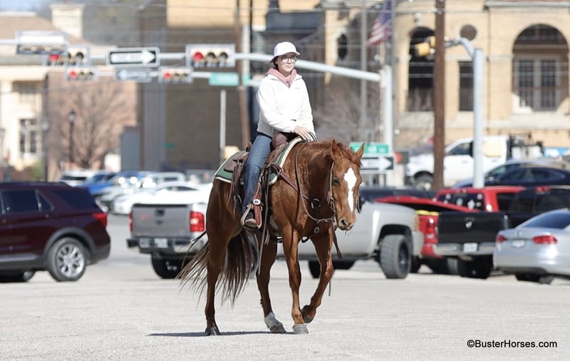 ONLINE AUCTION Place your bids at www.PlatinumEquineAuction.com Starting Bid $3500 Auction ends February 9th, 2025 Need a new saddle? Check out White Rock Saddles on our website or Facebook! Roofus came off of a really sweet older gentleman who was using him to check his fences and cows. He also rode him in a couple of small town rodeo parades, grand entries, and used him for parking and traffic control. He has been super quiet with us here and he had been turned out for a whole month when we got him. He rode off like he was ridden yesterday. He is super level-headed, chill, and not much of anything bothers him. He has a naturally-level/low head carriage and the cutest little typey quarter horse head. He is a great size at only 14.2 hands – but still very stout and wide to carry most any size adult. He’s easy to step on and off of and easy to throw your saddle up on. He stands dead quiet for mount and dismount on a big long loose rain and will walk around anywhere you point him on a big long loose relaxed rein. He is very confident out alone and did a lot of his rides alone; he happily leaves the barn and leaves the other horses. He rides well in a big group as well and doesn’t really care where he is in the marching order. He has a cute little trot and lope, he catches both of his leads well, and has a nice simple stop on whoa. He hops right in the trailer, hauls and unloads quietly, and will tie to the trailer all day long. If you are looking for a pleasant companion to keep turned out at your place and be able to get on and enjoy every ride – then this sweet boy would be a great one to look at. Please feel free to call us anytime if you have any questions about Roofus, contact Buster Horses Ashley 214-605-7174 Roofus has front shoes on, his teeth were just done by our equine dentist last week, he was just shod last week as well, and he also was dewormed. He is in great shape, a little on the fat side – and is ready to go to work doing whatever job you have for him. Watch his video, and to see additional videos, go to our website: BusterHorses.com or our Facebook page Buster Horses Roofus is located in Weatherford, TX – one hour from Dallas / Fort Worth International Airport. He is an easy day trip, or fun overnight trip to come and try out, from anywhere! We are experienced, knowledgeable sellers, and we can help with quickly arranging affordable shipping to any buyer’s location – we have experience shipping worldwide – including regularly to Hawaii, Canada, Mexico, Europe, and South Africa. ONLINE AUCTION Place your bids at www.PlatinumEquineAuction.com Starting Bid $3500 Auction ends February 9th, 2025 Need a new saddle? Check out White Rock Saddles on our website or Facebook!