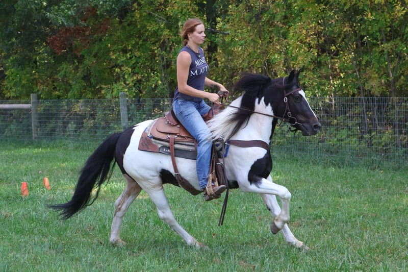 ONLINE AUCTION Place your bids at www.PlatinumEquineAuction.com Starting Bid $3500 Auction ends November 17th, 2024 Need a new saddle? Check out White Rock Saddles on our website or Facebook! Meet Barney! Here’s a kid’s pony deluxe. This little guy has thousands of hours being ridden, driven, and being handled by kids. If your kids can dream it up, I’m betting Barney has been asked to do it. Barney is a 6 year old black and white paint pony who stands a stout 13.2hh. He is beautifully marked with a gorgeous mane and tail! He’s just the perfect size for the little ones to groom, tack, and love on but he’s stocky enough for the big kiddos and small adults to hop on as well. He is a quiet natured guy who’s very simple to walk, trot, and will move into a canter with a kiss. He knows both leads, and even swaps his leads when asked. He is a kind and patient teacher. Kids can catch, lead, and groom him alone. This little guy comes with a resume a mile long. He has worked on a ranch out west. He’s been asked to round up and rope cows twice his size and he will gladly get the job done. Barney is also no stranger to the trails. He’s been in deep water, heavily wooded areas, seen wildlife, rough terrain and he is game to take his riders where ever they want to go. Barney has also worked at an English riding barn and has taught many kids the ropes of arena work. He will jump full courses as well. He jumps as cute as they come every time. Hes competed in local shows. He is also very well broke to drive. He’s been on the roads, in traffic, and used around the farm. He’s not one to shy from much of anything. Barney has been in costume parades. This is a hard pony to find as he’s just as broke as any big horse but comes in a pint sized package. He is also awesome in a back yard and will ride around swing sets, down the drive way, around kids toys, or whatever other bright ideas your kids may come up with. He would be a perfect addition to any back yard, ranch, or lesson program! This pony has irreplaceable mileage and experience! Enjoy the video he speaks for him self! Barney lives in Howell, MI 48855. Call or text Ellesse Schwartz at 248-390-6831 with any questions. ONLINE AUCTION Place your bids at www.PlatinumEquineAuction.com Starting Bid $3500 Auction ends November 17th, 2024 Need a new saddle? Check out White Rock Saddles on our website or Facebook!