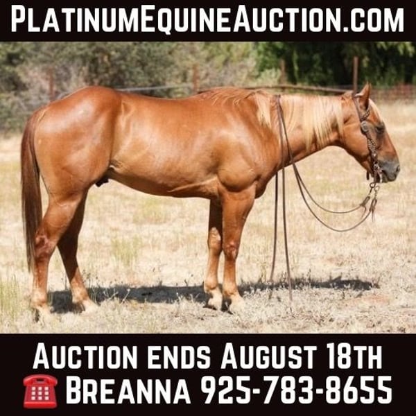ONLINE AUCTION Place your bids at www.PlatinumEquineAuction.com Starting Bid $3500 Auction ends August 18th, 2024 Need a new saddle? Check out White Rock Saddles on our website or Facebook! Artax is an absolute stunner that will get you noticed! From his shiny sorrel coat, his flaxen mane to his soft kind eyes. This boy has it all going for him and he knows it. He is 6 years old, standing a hair over 14hh but thick as a brick house. Short compact neck, apple bottom, and best part shiny teeth! lol videos will explain, this horse gets his daily teeth rinse when filling waters. I cannot describe the amount of personality artax has, he’s got enough for the whole barn. Curious and adventurous would best describe him! Artax takes to a trail course with ease, over bridges, tarps, flags, logs, tires, water, noddles, you name it. He never batted an eye. He’s got a very nice handle on him, flexes, spins around, stops, backs, walk trot and lope. The opportunity is endless with this boy. Very versatile in whatever you want to do. Loads up and hauls great. Ties, LOVES WATER bathes (just don’t expect him to not roll right after). Saddles quiet, bridles with ease. Great with feet. He does have all 4’s shoed my ground isn’t forgiving. Any attention he can get he will take. He truly is a barn favorite and wants to be in all the business. He’ll be sure to be the first horse you see. He’s an ideal horse for someone who wants to just dabble in every discipline, he’ll be talented no matter what you choose. Feel free to contact me at any time. Cross B Horses, Breeanna 925-783-8655 Located in Valley Springs, CA. ONLINE AUCTION Place your bids at www.PlatinumEquineAuction.com Starting Bid $3500 Auction ends August 18th, 2024 Need a new saddle? Check out White Rock Saddles on our website or Facebook!