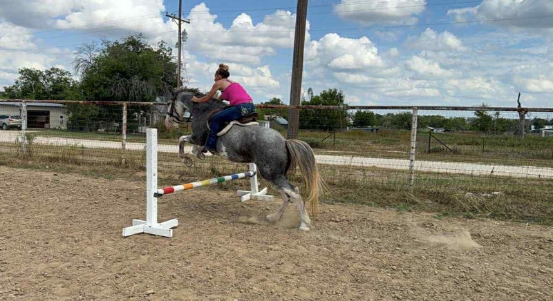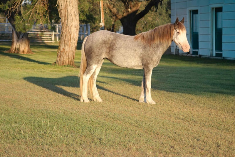 ONLINE AUCTION Place your bids at www.PlatinumEquineAuction.com Starting Bid $3500 Auction ends September 28th, 2025 Need a new saddle? Check out White Rock Saddles on our website or Facebook Looking for a reliable, beautiful, and family-friendly horse? Look no further than Bluebell! This stunning 7-year-old blue roan Gypsy Vanner/Paint cross is the ideal horse for trail riding, family adventures, and creating lasting memories. Standing at a sturdy 14 hands, Bluebell is the perfect size for both kids and adults to enjoy. Bluebell has a heart of gold and a gentle disposition that makes her a joy to be around. She rides English or Western! We been using her for people to learn English on and she’s been a great teacher for kids and adults. Bluebell is patient and forgiving, making her an excellent choice for inexperienced riders. She has been use in kid camps for lessons. Bluebell has also carried around autism kids letting them enjoy a great ride. She is always eager to please and loves attention, whether it’s grooming, trail rides, or just hanging out in the pasture. Bluebell truly shines on the trails or in the arena. Her calm demeanor and sure-footedness make her a reliable partner in any terrain. She handles various trail obstacles with ease. Water crossings, rocky paths, or wooded areas – Bluebell takes it all in stride. She’s safe around traffic, fire, and even trails. I’ve done a little bit of everything on her. Bluebell is more than just a trail horse; she is a member of the family. Her gentle nature makes her safe and fun for the family to ride and handle. She loves being groomed, petted, and spending time with her person. Bluebell is also easy to catch in the pasture and stands quietly for mounting and dismounting. Bluebell is up-to-date on everything. She is one of a kind that we will be sad to see leave if her forever person comes! Come see her for yourself or we can schedule a FaceTime to meet her! Call or text Makayla with MW Horses at (254)434-8650. Need hauling? We got a list of reliable haulers around the US! ONLINE AUCTION Place your bids at www.PlatinumEquineAuction.com Starting Bid $3500 Auction ends September 28th, 2025 Need a new saddle? Check out White Rock Saddles on our website or Facebook