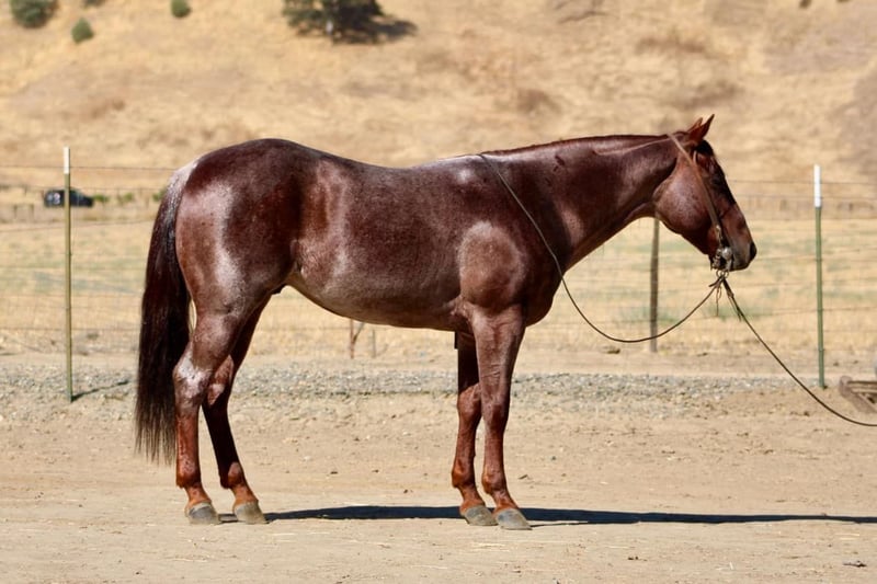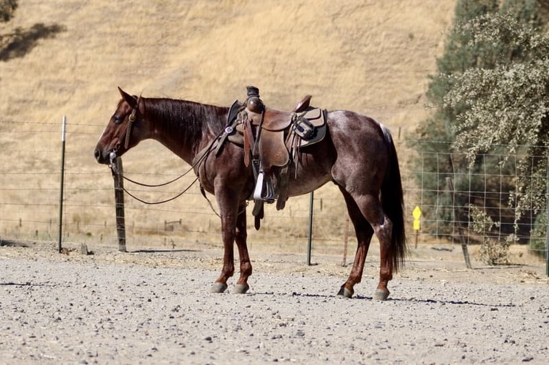ONLINE AUCTION Place your bids at www.PlatinumEquineAuction.com Starting Bid $3500 Auction ends October 27th, 2024 Need a new saddle? Check out White Rock Saddles on our website or Facebook! Mini Cooper this stunning red roan gelding who truly embodies charm and grace at just 6 years old he acts like a seasoned veteran. Standing at just under 14 hands tall, this gentle soul is easy to mount. With a smooth sliding stop that feels like gliding on air and fancy turns that would impress even the most seasoned riders, he is very smooth in walk; trot and canter and transitions beautifully in all his gaits. He lopes nice easy correct circles. Mini Cooper is beautifully broke and ready for adventure. Mini cooper could easily do 4-H or play days with the kiddos or sorting or ranch versatility His friendly demeanor makes him an instant favorite in any family he’s not just reliable but downright lovable. Whether you’re herding cattle or leisurely gathering with friends, this boy thrives in various roles he’s been branding and heeling sleds and started on slow steers with ease! On trail rides, he’s your steadfast companion, having confidently navigated beaches and bustling streets without blinking an eye at cars or pedestrians. Obstacles like tarps,flags, teetering bridges or walking over tires he seen it all No problem for Mini Cooper he breezes through them like they’re nothing more than gentle whispers of wind. Loading up for travels? He hops right in without hesitation! You’ll find him standing patiently tied all day long like a true soldier while you prepare for your next outing together. With his remarkable versatility and character shining bright, it’s no wonder we consider him one of the coolest horses around a real gem waiting to become your best friend on four legs! Mimi Cooper is more on the slow side but will pick up the pace when’s asked he is one that likes to cruise along and enjoy his surroundings . He is great for the farrier and easy to tack up and groom he loves attention. He his good in stall or pasture atmosphere. He thrives on attention and loves being doted on he’s a special boy for sure. Please contact Longhorn Ranch Dina 831-537-1915 Located in Paicines, CA. ONLINE AUCTION Place your bids at www.PlatinumEquineAuction.com Starting Bid $3500 Auction ends October 27th, 2024 Need a new saddle? Check out White Rock Saddles on our website or Facebook!