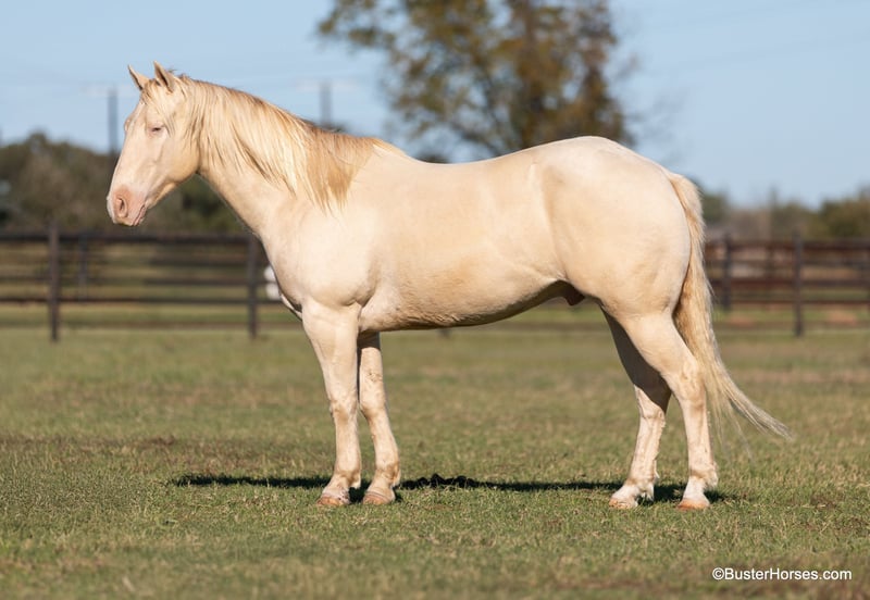 ONLINE AUCTION Place your bids at www.PlatinumEquineAuction.com Starting Bid $3500 Auction ends December 15th, 2024 Need a new saddle? Check out White Rock Saddles on our website or Facebook! “Maximus” – 14.2H, 6 year old white Cremello quarter horse gelding Maximus is a super stout made gorgeous gelding, just coming into his prime years. If you have been looking for something super laid back and gentle – and are not wanting to settle for an older horse, then definitely check out this guy and watch his whole video! Maximus got his miles in his working clothes; he was mostly used outside on a ranch, and used in the sorting pens and in the feedlots. He is massive made, super stout and wide – the model on him in the video is literally 6’2 and she is ALL legs! He has great bone and is made to last. Maximus has a good stop, a nice easy handle, he trots and lopes around super balanced and relaxed. He has a simple one-handed handle and will ride anywhere pitched away on a nice long loose rein at any gait. He is a pretty mover, naturally very balanced and smooth, he is a very comfy ride at all gaits. Maximus was raised out in big open country – but he absolutely loves going to town. He is super relaxed going down the side of the highway, and down the busy streets in town. He loves meeting people and seeing all the things that there are to see. He rides out great alone, and has probably been more miles alone than he has in groups. He is easy to get along with and lives outside well in a group of horses, or he is happy kept inside in the stall barn. He is easy to catch and always comes up to you, he loves being around people and he loves going to work. He stands tied quietly, is easy to saddle and bridle and he stands dead still for you to step on and off. He loves a bath and really enjoys playing in the water. He is great at crossing creeks and loves to go for a swim in the river or pond. He hops right on the trailer easily, and stands quietly on the trailer as well as tied off on the side of the trailer. He has no vices or bad habits and is a fresh clean slate for someone to finish out as a rope horse, if you want to go that direction with him. Please check back on our website for additional videos to be posted of him over the next two weeks! Please call anytime for more information at 214-605-7174 Maximus is located in Weatherford, TX – one hour from Dallas / Fort Worth International Airport. He is an easy day trip or fun overnight trip to come try out, from anywhere! We are experienced knowledgeable sellers and we can help with quickly arranging affordable shipping to any buyer’s location – we have experience shipping horses worldwide – including regularly to Hawaii, Canada, Mexico, Europe, and South Africa. Go to our Facebook page Buster Ranch and check our website for buyer reviews, for more videos, additional info, etc: https://busterhorses.com/Maximus ONLINE AUCTION Place your bids at www.PlatinumEquineAuction.com Starting Bid $3500 Auction ends December 15th, 2024 Need a new saddle? Check out White Rock Saddles on our website or Facebook!