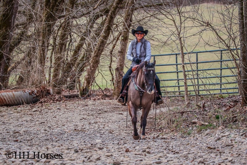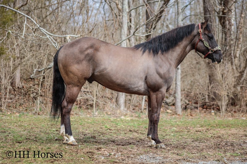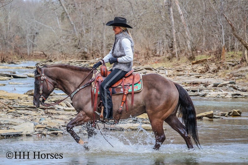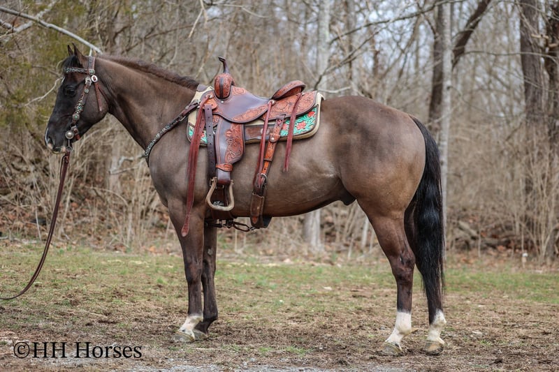 ONLINE AUCTION Place your bids at www.PlatinumEquineAuction.com Starting Bid $3500 Auction ends March 23rd, 2025 Need a new saddle? Check out White Rock Saddles on our website or Facebook! This is “RANGER”, a real cool unique GRULLA QUARTER HORSE GELDING that is well broke. He has been used for ranching and trail riding. He stands a muscular 14.2 hands tall and is built like the old school Quarter Horse geldings. He has a wide set forehead, a small muzzle, small cute ears, and dark eyes. He is 7 years old. This gelding is well broke and handy. He will one hand neck rein, lope around low headed and quiet, and is relaxed when out trail riding. This gelding has been ridden in the pastures to check cattle. He has been through the woods, through deep water, and over rocky terrain. This gelding will ride out alone and has been ridden in groups. He is a good horse to have around for anyone to ride. He has excellent ground manners, loads, stands tied, and hauls. He is fine with dogs trailing his heels. He will unload in new surroundings and ride off with no issues. He lopes off with no hump and no buck. Located in Flemingsburg, KY. For more info or to make a Buy It Now Offer contact HH Horses Erin 304-238-4155 ONLINE AUCTION Place your bids at www.PlatinumEquineAuction.com Starting Bid $3500 Auction ends March 23rd, 2025 Need a new saddle? Check out White Rock Saddles on our website or Facebook!