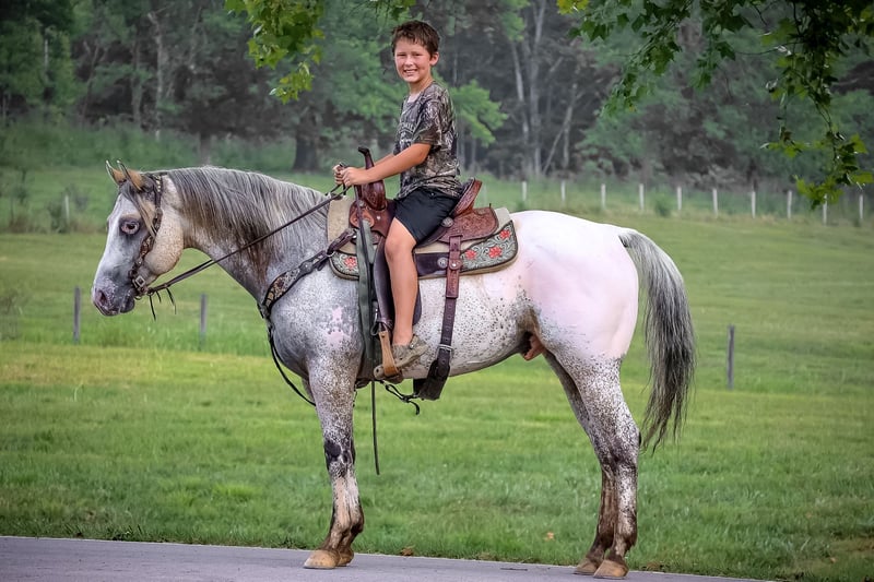 ONLINE AUCTION Place your bids at www.PlatinumEquineAuction.com Starting Bid $3500 Auction ends August 25th, 2024 Need a new saddle? Check out White Rock Saddles on our website or Facebook! This is “Brother”, a FAMILY AND YOUTH FRIENDLY REGISTERED APPALOOSA GELDING that has been shown, used to work cattle, and trail ride. He is a very personable and gentle horse that aims to please and genuinely likes children. He stands 14.3 hands tall and is 6 years old. This gelding has had pleasure training when he was younger and has been shown in the gymkhana events by youth riders. He has been used in the pastures to check cattle and fences. He lopes nice circles, has a comfy jog, and is very easy to stop. He will one hand neck rein, he has a nice turnaround, he backs up and moves off of leg cues. He has been in the mountains trail riding and will cross any depth of water and has swam across deep rivers. He is patient, well broke, seasoned, and experienced. He is a nice family horse that everyone can hop and and enjoy yet if you need to step it up a notch and chase some cattle or have some speed, he can do that too. He calms right back down and is not hot. He will walk relaxed on a loose rein and he has even been used for some riding lessons. If you want one with color, that is registered, just the right size, not too big and not too small and not too fast and not too slow, that is in the prime of his life and has many years ahead of him, here is your chance. He’s flashy, fun, and most of all stays broke and is youth friendly. Located in Flemingsburg, KY. Contact HH Horses Erin 304-238-4155 with any questions. ONLINE AUCTION Place your bids at www.PlatinumEquineAuction.com Starting Bid $3500 Auction ends August 25th, 2024 Need a new saddle? Check out White Rock Saddles on our website or Facebook!