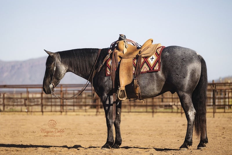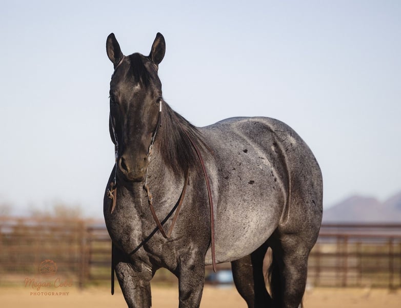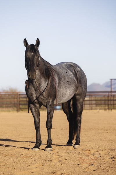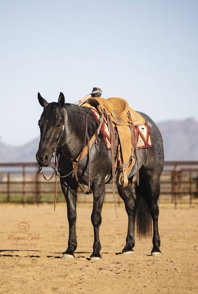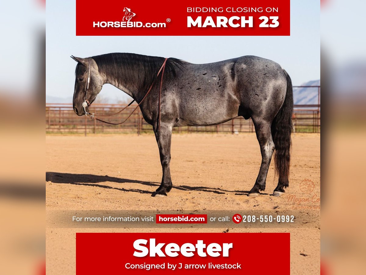 ⚜️𝓽𝓱𝓮 𝐆𝐎𝐋𝐃 𝓢𝓮𝓵𝓮𝓬𝓽⚜️ Happening now thru MONDAY | MARCH 23rd - Available EXCLUSIVELY on HorseBid's website! For more details and to register visit: www.Horsebid.com CONSIGNOR CONTACT: J arrow livestock 208-550-0992 LOCATION: Wickenburg, AZ BREED: AQHA REGISTERED: Yes REGISTERED NAME: Boons got the blues COLOR: Blue roan HEIGHT: 14.3 AGE: 8 GENDER: Gelding What an amazing blue roan gelding! He’s broke to death beautiful to look at and so much fun to ride. Skeeter is a trained reined cowhorse who was shown successfully he was also used on the ranch throughout his cowhorse training. Since he has spent time on the ranch and has continued his arena training. Skeeter is gentle and safe for the whole family our 12 year old has been heeling steers on him this winter and he’s super easy to operate. He will really watch a cow and would also be a big time sorting horse. This gelding is so versatile, if you can do it horseback skeeter can help you get it done. Easy going down the trails he’s not spooky or watchy at all. He will cross water and anything you point him towards. He’s also traffic safe and has been to town to see the sights. We’ve heeled and breakawayed a bunch of cattle on him and he’s really took to it good. He would be a jam up high school rodeo horse, you could show him in the cowhorse breakaway and heel on him. He’s one of those really good geldings that are super hard to find and impossible to replace. Skeeter is 100% sound with no vices please call us to learn more about him or to come give him a try.