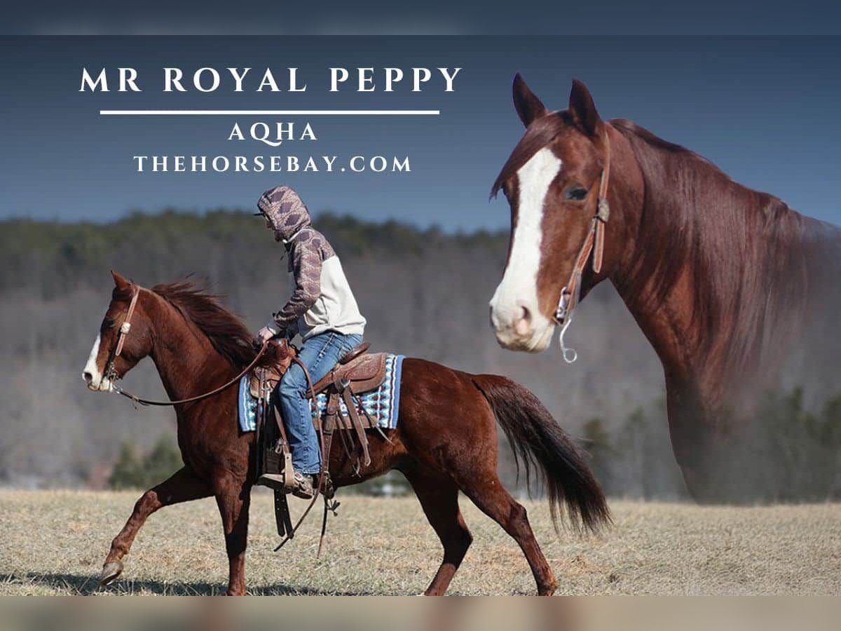 PUJA ABIERTA EN THEHORSEBAY.COM. LA VENTA TERMINA EL 02/12. Más información está disponible en el sitio web, incluyendo una inspección veterinaria actualizada, Coggins, video, imágenes y la información de contacto del propietario para hacer preguntas, solicitar información o hacer arreglos para visitar. Mr. Royal Peppy es un potro castaño bien construido. Mide alrededor de 15hh y es un potro registrado AQHA de 2018. Peppy puede salir y recorrer los senderos, manejando cualquier obstáculo en su camino... Monta con confianza y sin titubeos. Ha estado expuesto a todo tipo de vida silvestre. Puede subir o bajar pendientes empinadas, cruzar arroyos profundos, saltar sobre árboles caídos y todo tipo de terrenos difíciles mientras sigue siendo firme en sus patas. Ha sido montado por la ciudad, es seguro en el tráfico y no se asusta fácilmente. Ha comenzado a trabajar con el muñeco de la soga y está haciendo un buen trabajo siguiéndolo. Conoce bien el rancho y tiene mucho sentido del ganado. Lo hemos llevado a varios trabajos de captura de ganado y hemos atado vacas y toros grandes con él. Trabajará la soga mientras tú atas uno y sabe cómo ayudarte a completar el trabajo. Tiene un trote suave, un buen galope, una buena parada, gira en círculo en ambas direcciones y retrocede con facilidad. ¡Peppy es un excelente caballo para cualquier cosa, desde senderismo hasta trabajo en el rancho y es un placer estar cerca de él!