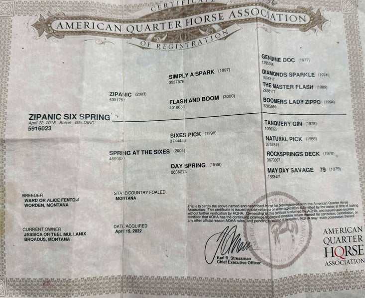 "AVAILABLE ON ONLINE HORSE AUCTION AT www DOT PlatinumEquineAuction DOT com BIDDING OPEN NOW thru SUNDAY | MARCH 1ST! *Final price will be determined on auction site* CONSIGNOR CONTACT INFO: Makenna Hartzell 817-659-3778 LOCATION: Mineral Wells, TX Zipanic Six Spring 8 year old AQHA sorrel gelding. weighs 1300lbs, stands 15 hands tall. Trail/Ranch horse Zip is a very easy gelding, a good one to have around! He has been rode extensively outside and down the trail his whole life! He’s seen it all and is an absolute joy to be around! Safe for the whole family, has been rode by kids up to an older gentleman! Zip had his tail chewed out by the calves in his pen next door, but hair grows back thankfully! He has a small bump on his left front knee, he has full range on motion and does not effect him. located in Mineral Wells Texas but have reputable haulers that go all over the country, including Hawaii and Canada. Give me a call or text and I’d be happy to answer any questions! 817-659-3778