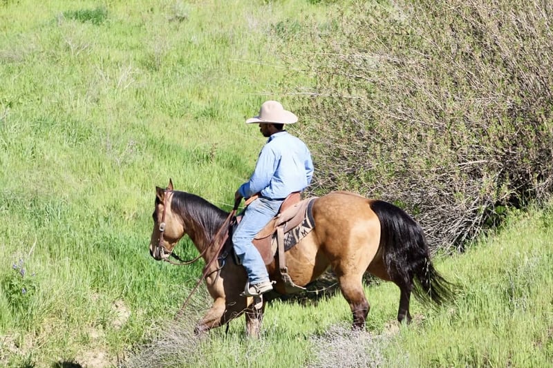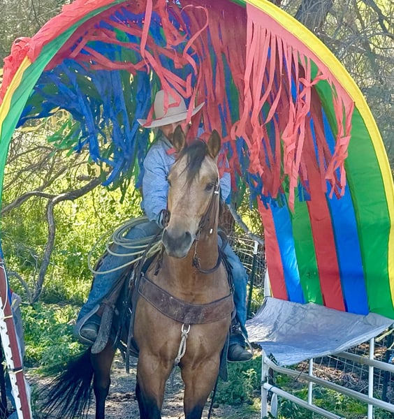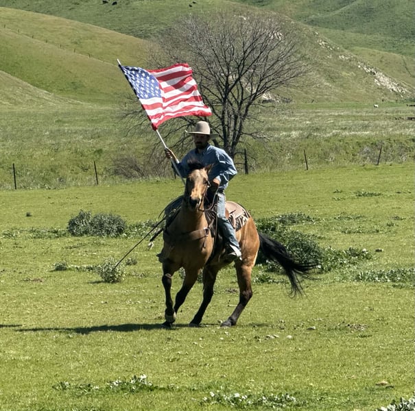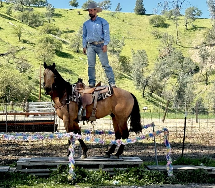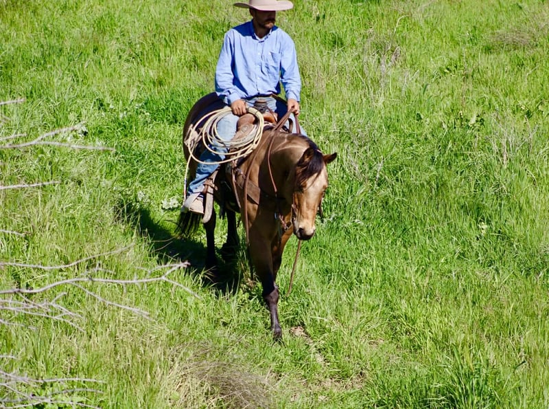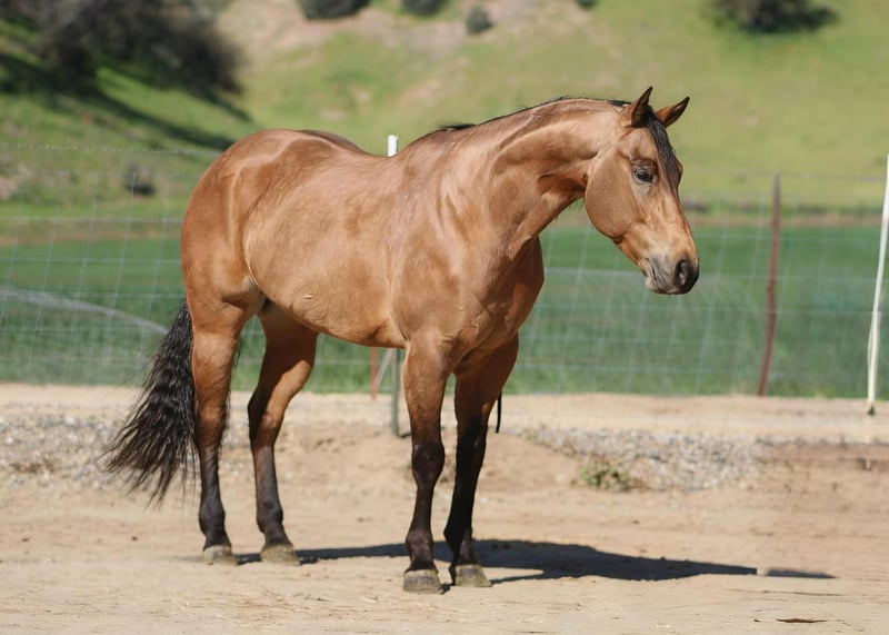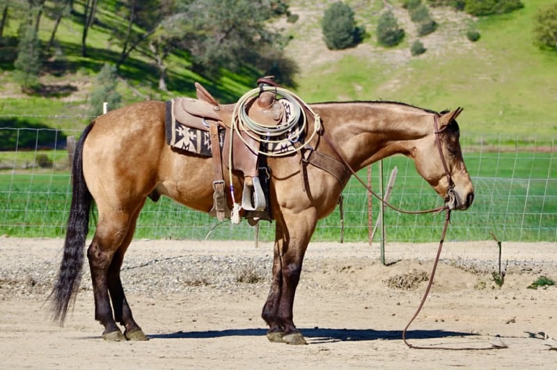 "AVAILABLE ON ONLINE HORSE AUCTION AT www DOT PlatinumEquineAuction DOT com BIDDING OPEN NOW thru SUNDAY | MARCH 22ND! *Final price will be determined on auction site* CONSIGNOR CONTACT INFO: Longhorn Ranch 831-537-1915 LOCATION: Paicines, CA AJ Golden Dapple Buckskin Gelding • 8 Years Old • 15 Hands If you’ve been waiting for a calm golden buckskin that anyone can ride, your search might just be over. Meet AJ. This golden dapple buckskin shines like polished gold in the sunlight, dapples glowing from every angle. But what truly makes AJ special isn’t just his color — it’s his mind. AJ is calm, steady, and completely unflappable. The kind of horse that settles into whatever you ask of him and makes every ride enjoyable. Riders of all levels feel comfortable on him, from beginners learning the ropes to seasoned riders wanting a dependable partner. He has been exposed to just about everything you can think of. Flags flying, tires dragging, pool noodles waving, tarps, bridges, tight spaces and obstacles — AJ handles it all with quiet confidence and a level head. AJ is also comfortable riding through town. Pedestrians, barking dogs, honking cars, passing traffic, big trucks, and rumbling semis are all taken in stride. He stays calm and focused on his rider no matter what is happening around him. On the ranch he’s a willing partner that will gather, sort, and cover country with ease. He reads cattle naturally and goes about his job with a practical ranch-horse mindset. AJ has also been started on the lead steer and is showing great potential to become a rope horse. He tracks cattle well and is picking up the job with a willing attitude. Out on the trail, AJ is exactly what most riders are searching for. He is sure-footed, confident, and enjoyable whether riding alone or in a group. Creeks, brush, uneven ground, and open country are all just part of the ride for him. In the arena he rides soft and balanced with smooth circles, a nice stop, and an easy turnaround. He stays honest and enjoyable whether you ride him every day or give him a few days off. Around the barn AJ is just as pleasant. He ties quietly, hauls well, stands patiently for the farrier, and settles easily in a stall or turnout. AJ is the type of horse the whole family can enjoy, while still being useful enough for ranch work, trail adventures, obstacles, or progressing further in the roping pen. And when that golden coat catches the sunlight… he absolutely glows. Good-minded horses with AJ’s looks, versatility, and disposition are getting harder and harder to find. Don’t miss the opportunity to make him yours. Longhorn Ranch – Paicines, California Call or Text Dina: 831-537-1915 Nationwide shipping available. We are happy to coordinate reliable transportation anywhere in the United States.